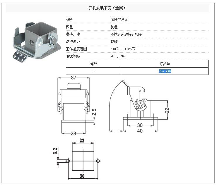 оболочка:Верхняя крышка (H3A-MTG-M20) Нижняя крышка (H3A-MAG)