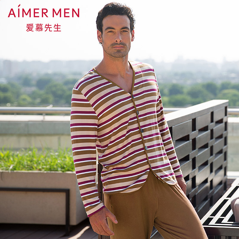 Г -н Ичи бренд модальные полосы Прета Y -Коллар мужской домашний кардиган пижамы 41E23