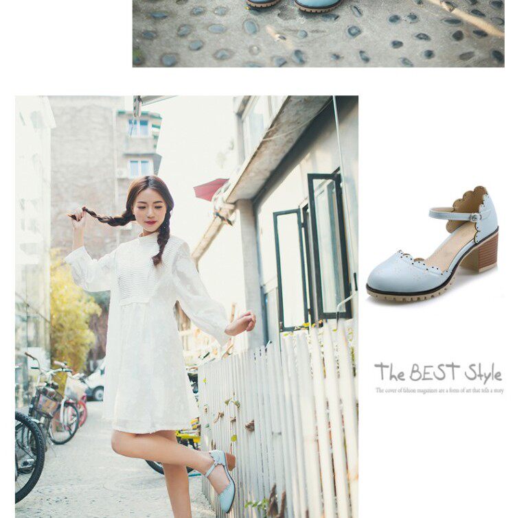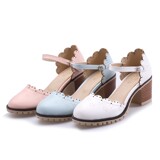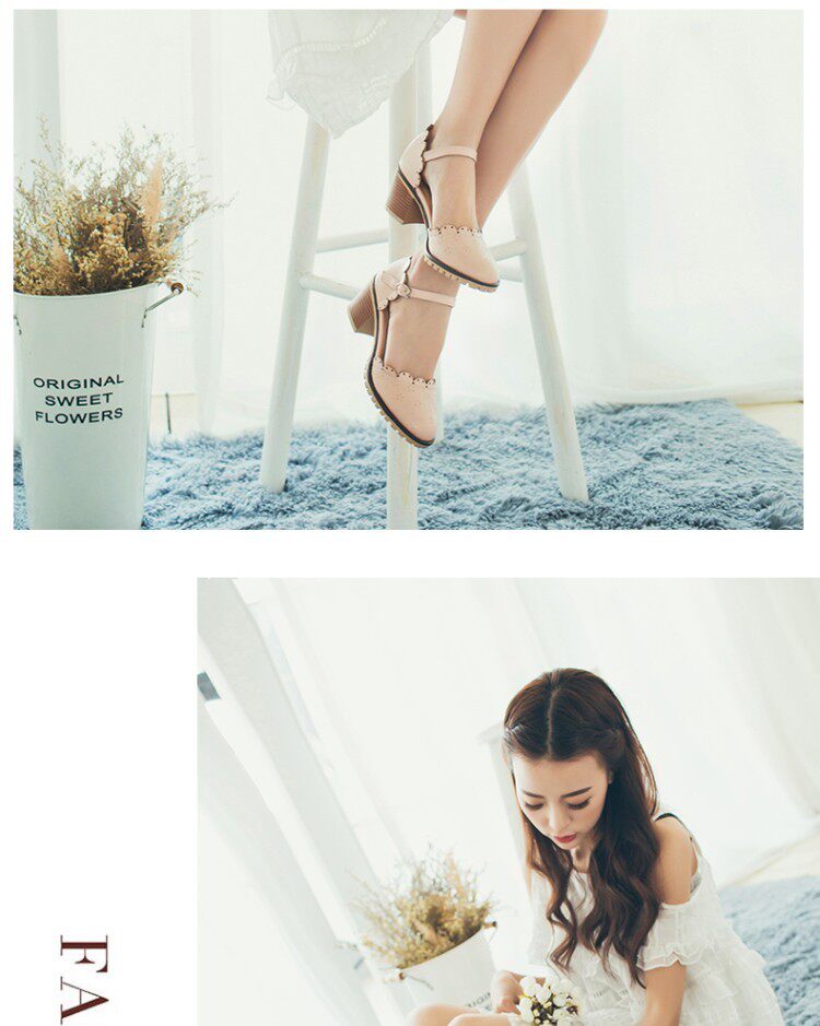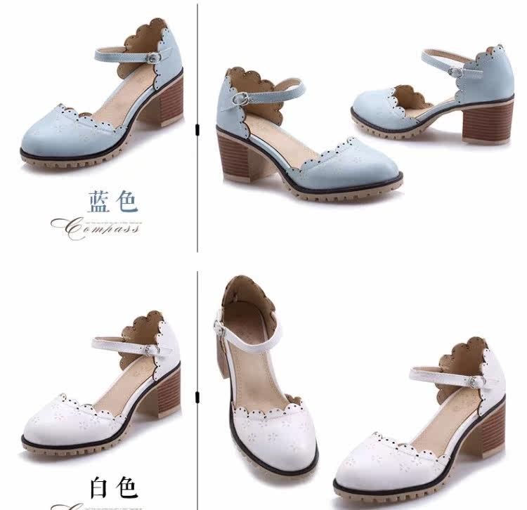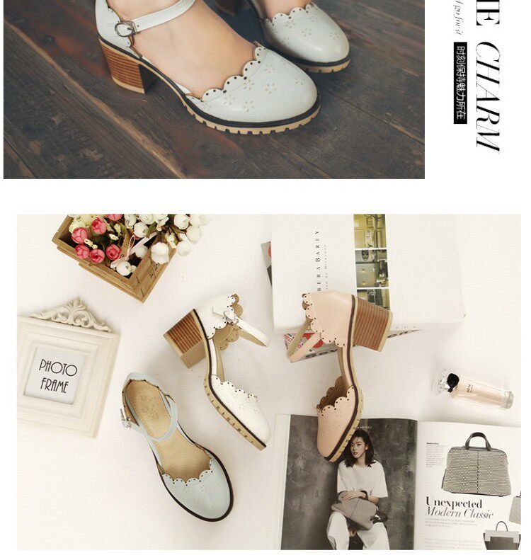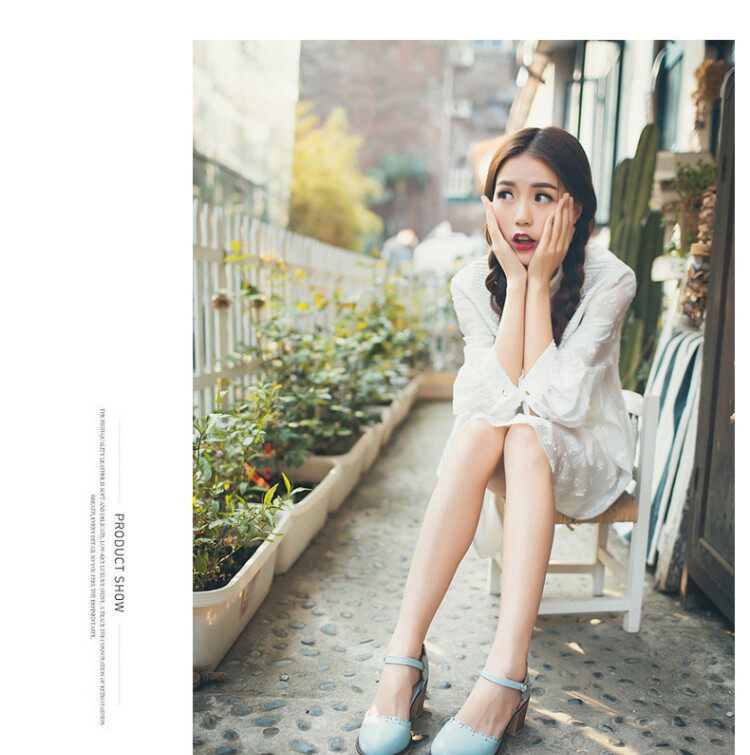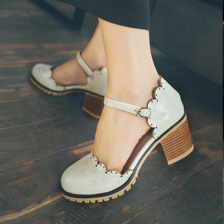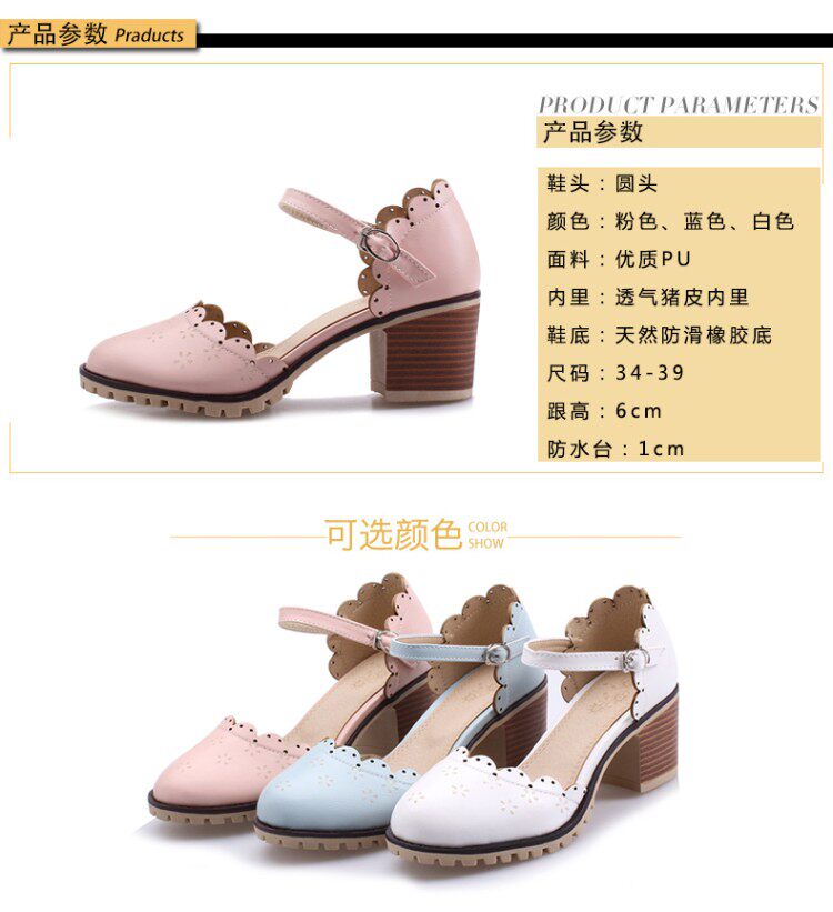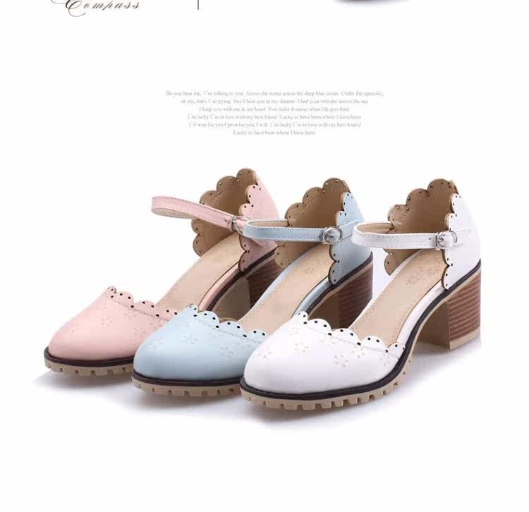 Весенне-летние новые босоножки в корейском стиле в студенческом стиле, милые кружевные непромокаемые босоножки на платформе, толстой подошве, толстом высоком каблуке с пряжкой и полым носком