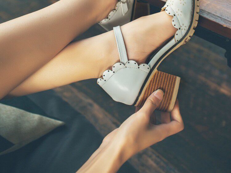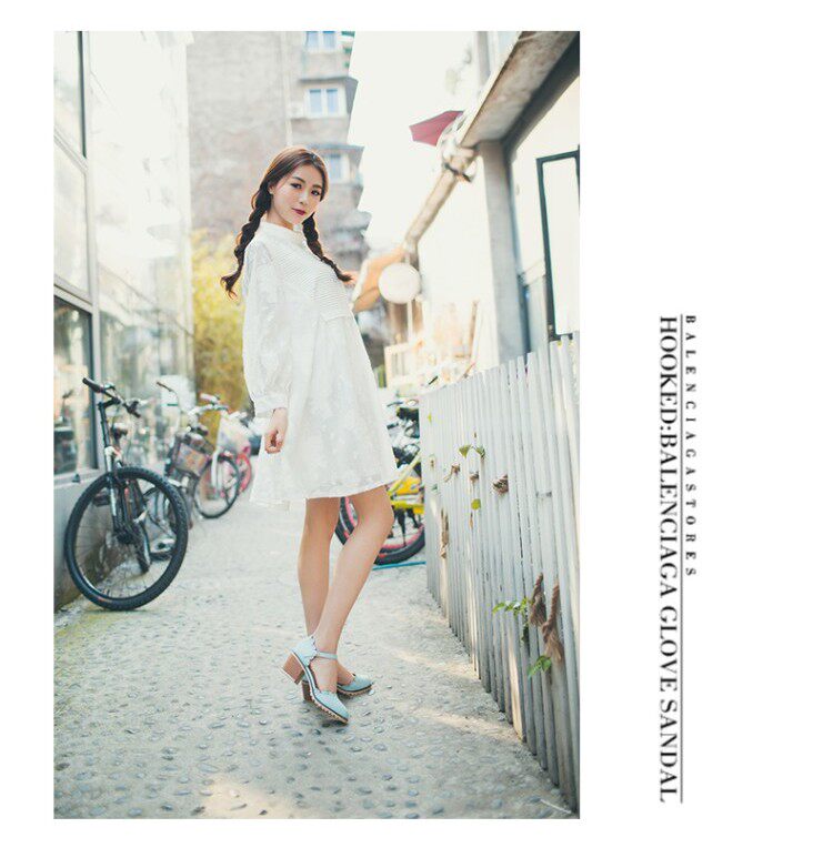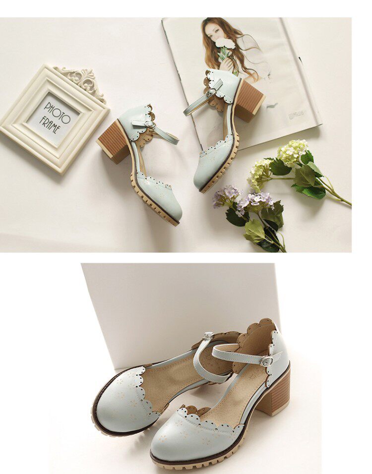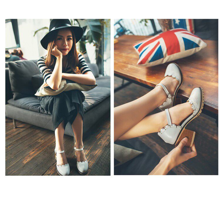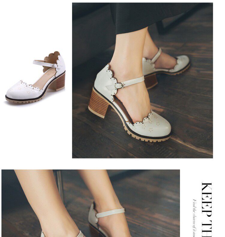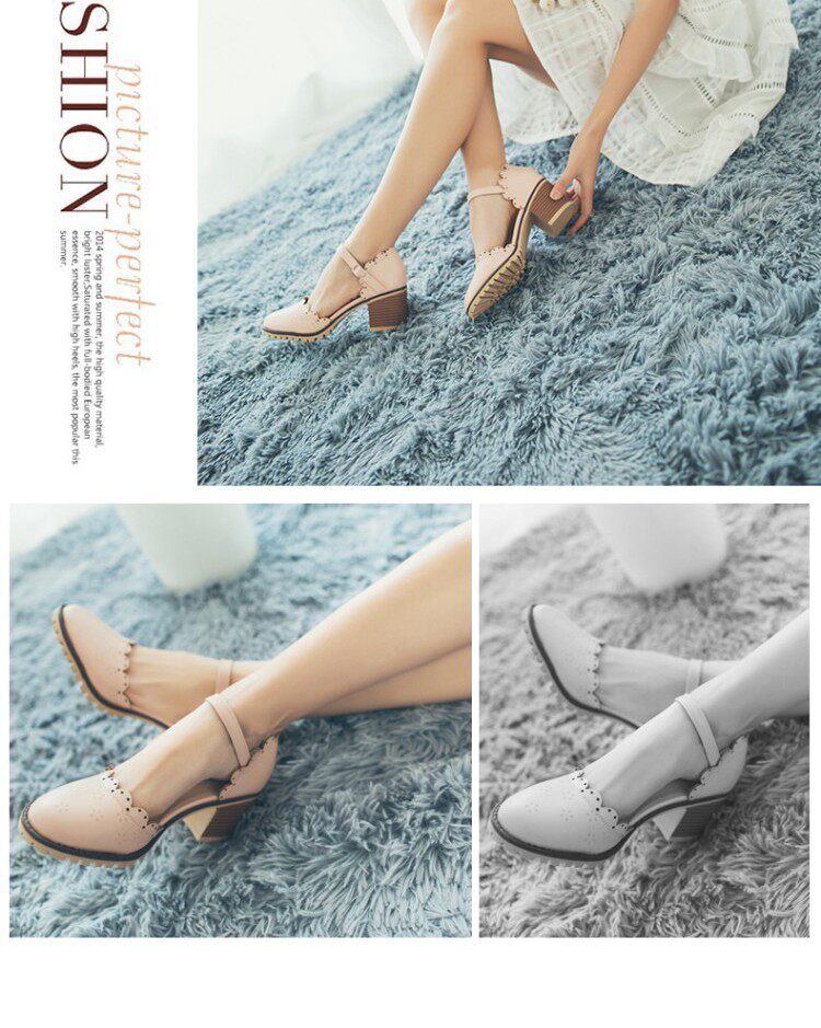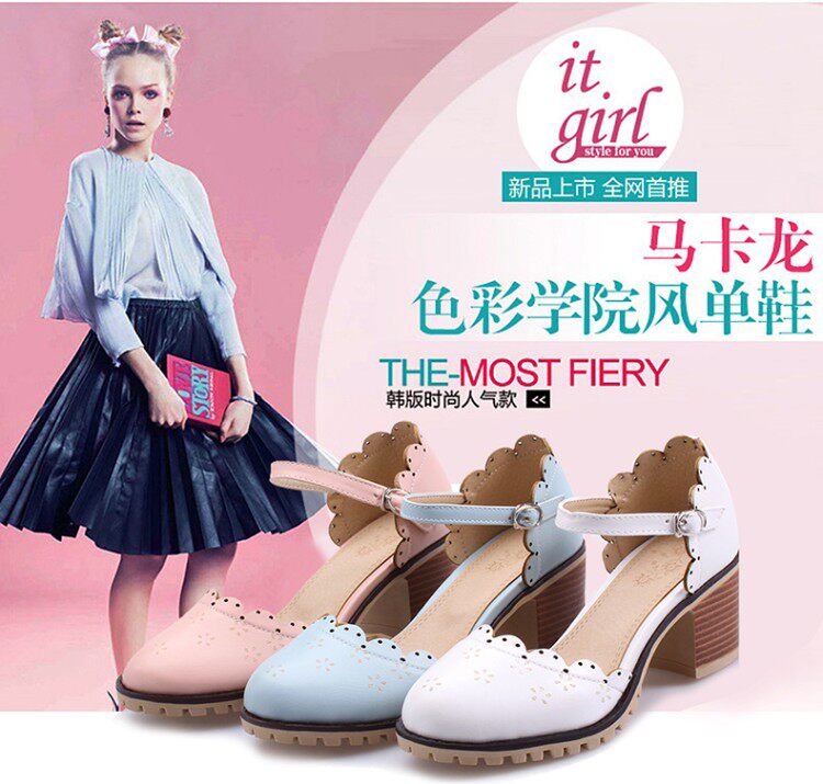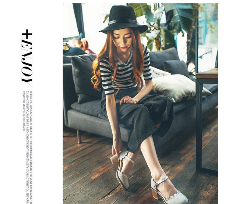 Весенне-летние новые босоножки в корейском стиле в студенческом стиле, милые кружевные непромокаемые босоножки на платформе, толстой подошве, толстом высоком каблуке с пряжкой и полым носком
