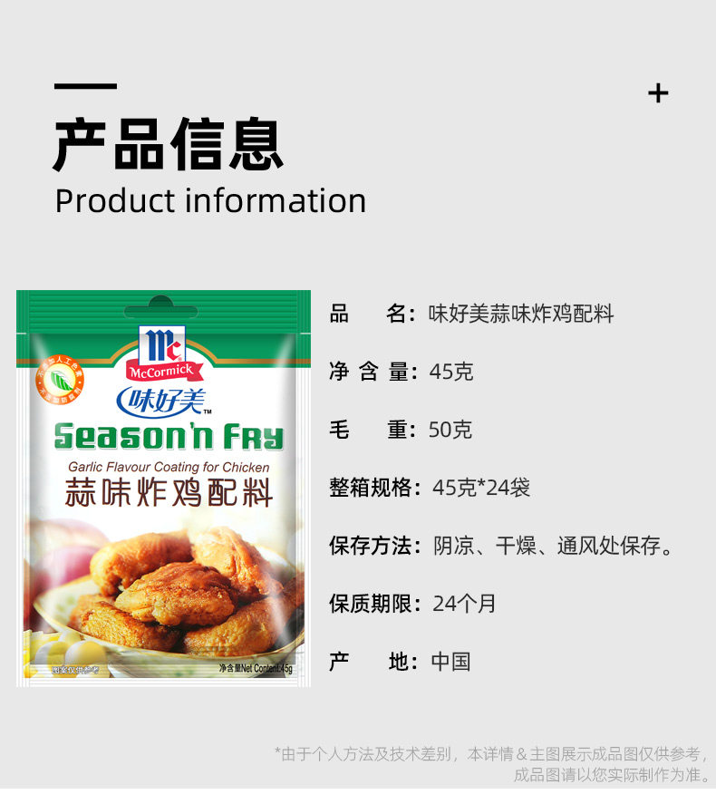 Хорошо -подобный чесночному вкусу жареные куриные ингредиенты 45 г*7 маленьких мешков Дом Черночный вкус Маринад МАРИНАД ГРИБЛЯ