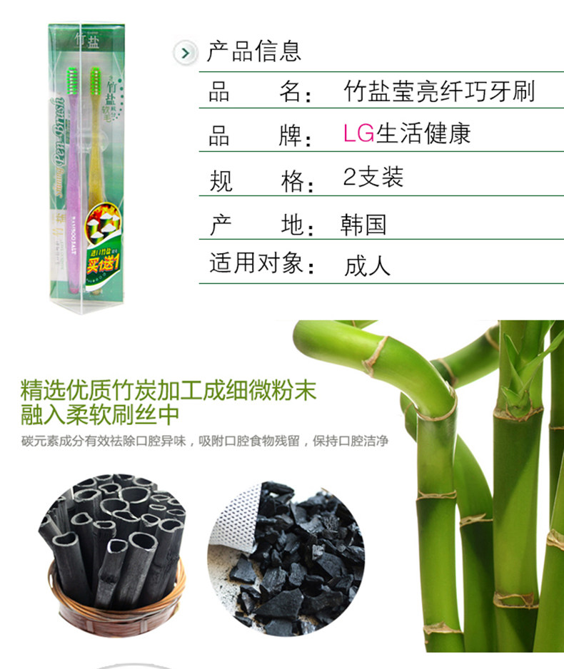 LG Bamboo Salt Salt Bright and Cellicate зубная щетка 2 упаковывает небольшая головка импортированная очистка мягких щетиновых резин