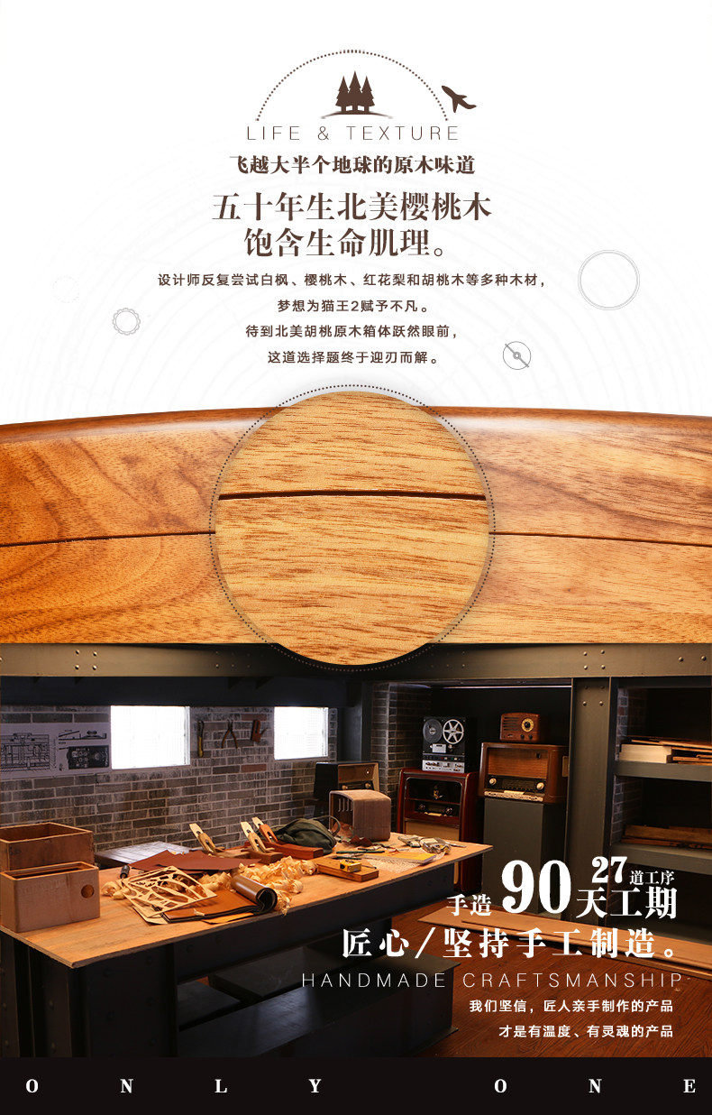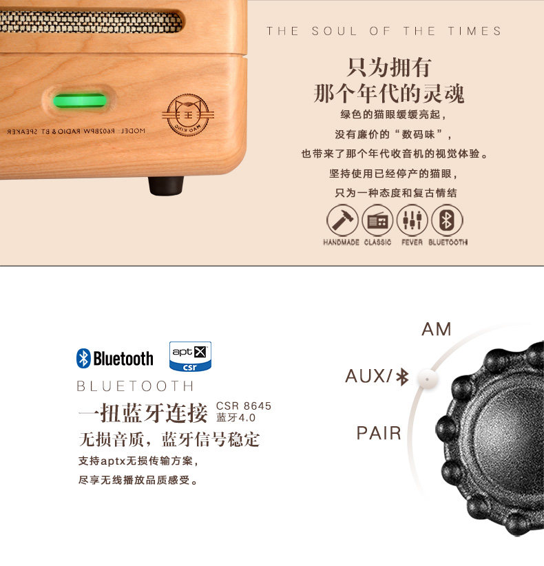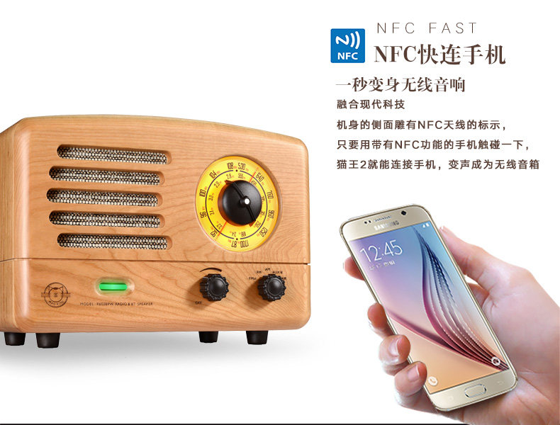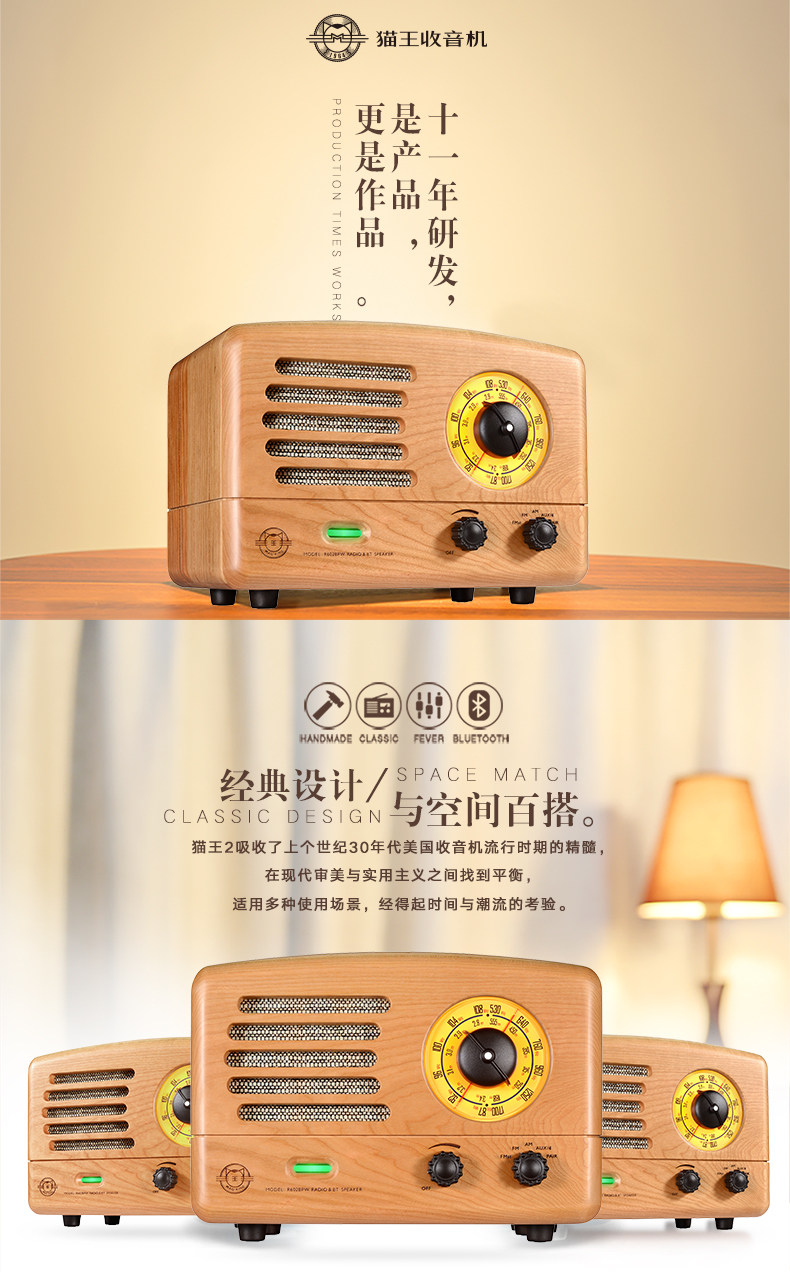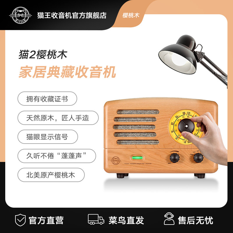 猫王音响 Элвис 2 вишнево дерево ручной работы в ретро -динамике Радио беспроводной блюэтут -портативный журнал