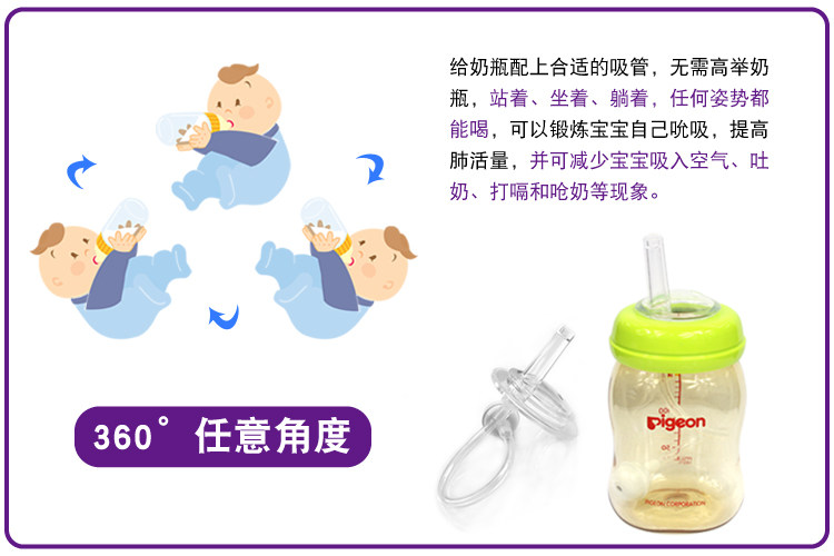 Бутылочка для кормления, сменная трубочка, силиконовая соска, 3, широкое горлышко