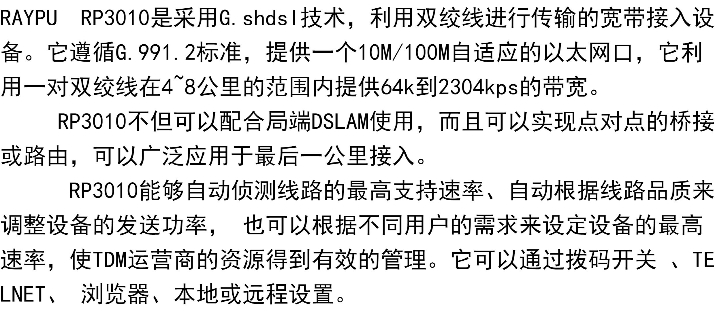 RP3010 Ethernet Far Biography, SHDSL, путем отдаленного прохождения линии, трансмиссии телефонной линии Ethernet