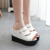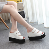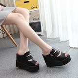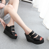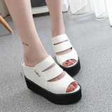 Летние новые стильные босоножки без шнуровки на танкетке на толстой подошве, босоножки на очень высоком каблуке с открытым носком и рыбьим ртом, нескользящие женские тапочки, увеличивающие внутреннюю высоту, бесплатная доставка