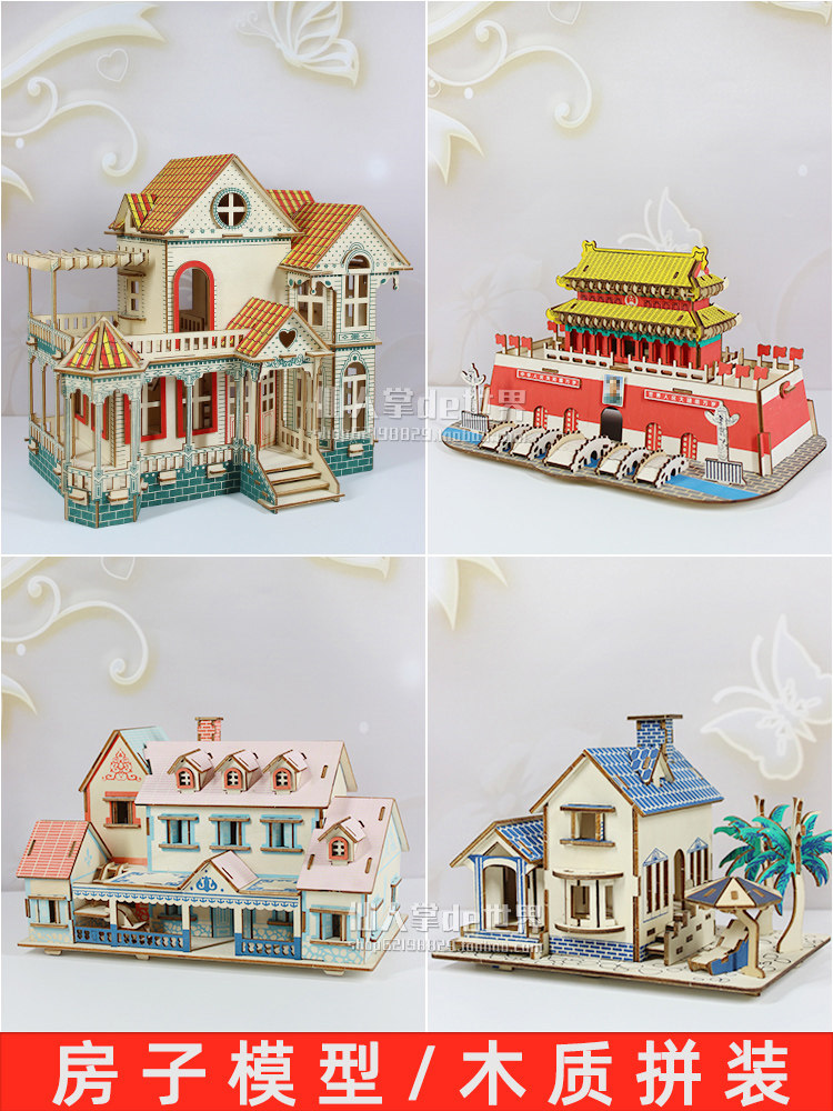 Деревянный конструктор, трехмерная головоломка, реалистичный домик, вилла, DIY, в 3d формате