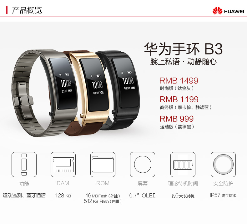[Официальный подлинный] Huawei/Huawei B3 Smart Sports Health Step Step Blues Bluetooth Call