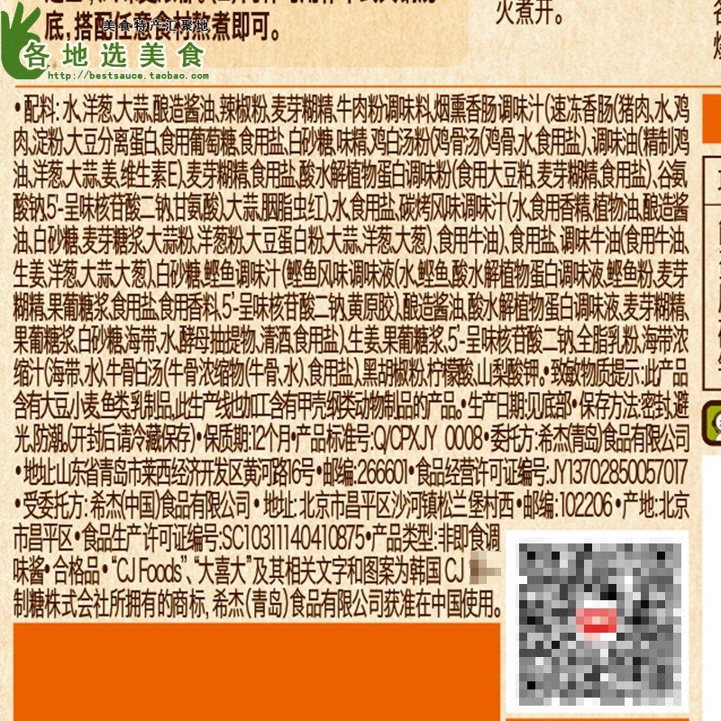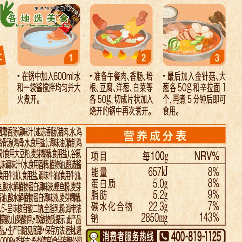 Daxi Korean -Syle Special Hot Pot Sauce 100G*10 мешков корейских рыбных шампуров, плита Qimchi, кантон -вареного горячего горшка.