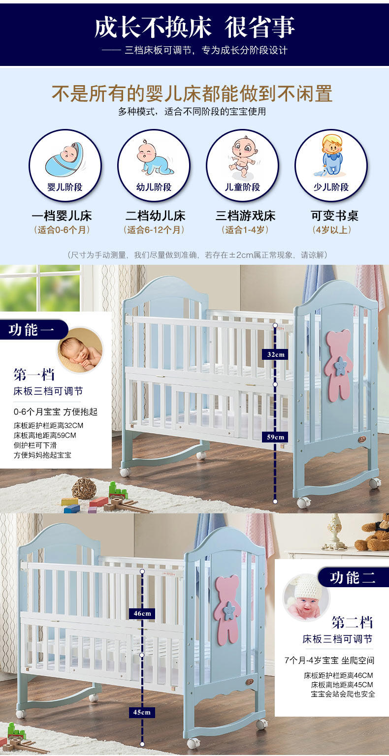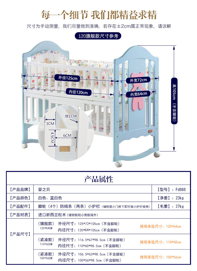 婴之贝 Для кроватки, детская универсальная колыбель для кровати из натурального дерева, качалка для новорожденных для приставной кровати, москитная сетка