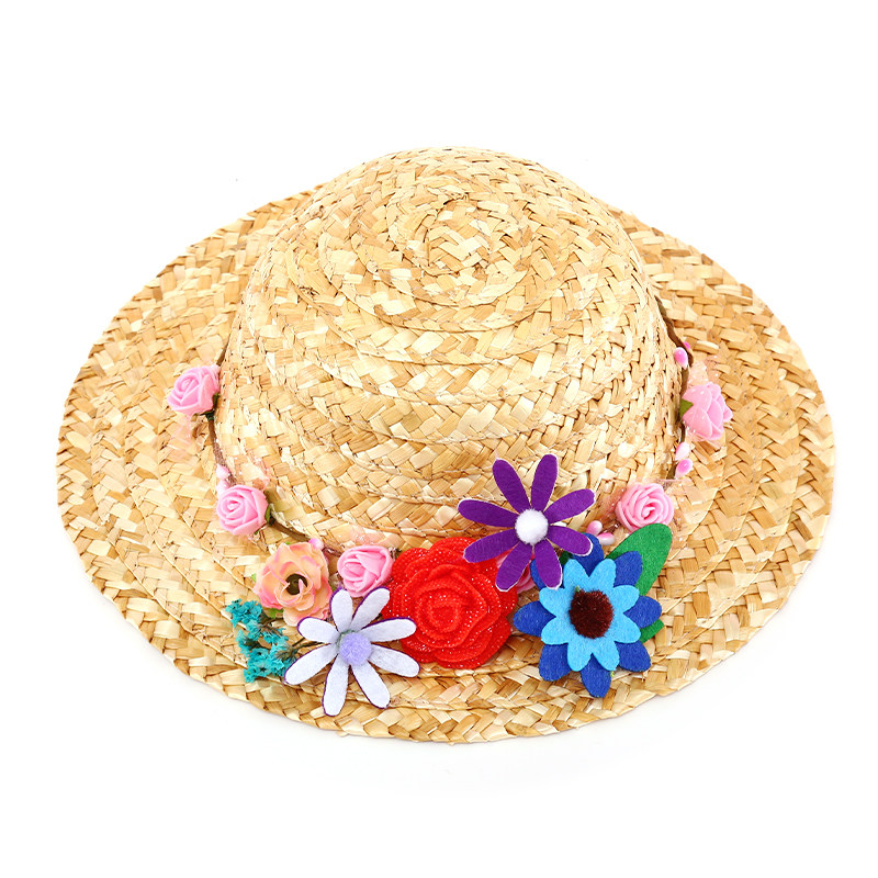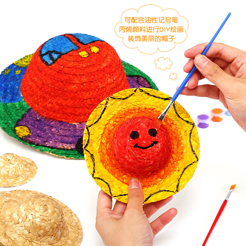Детская ручная рука -соломенная шляпа в детском саду в классе