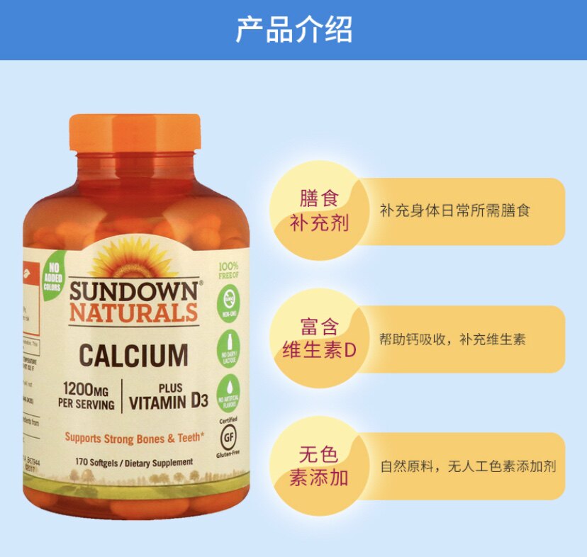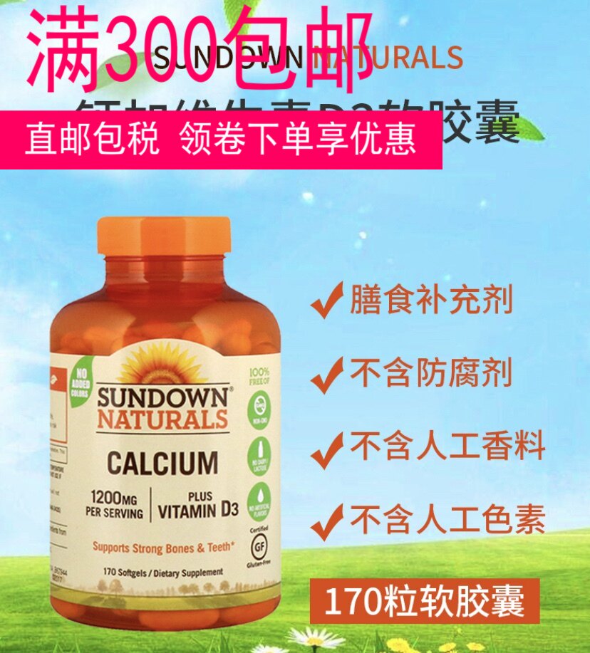 15 -Year -Sold Store Direct Prilem Sundown Natural D3 кальций кальций кальций Кальций, способствующее здоровью скелета 170 капсул