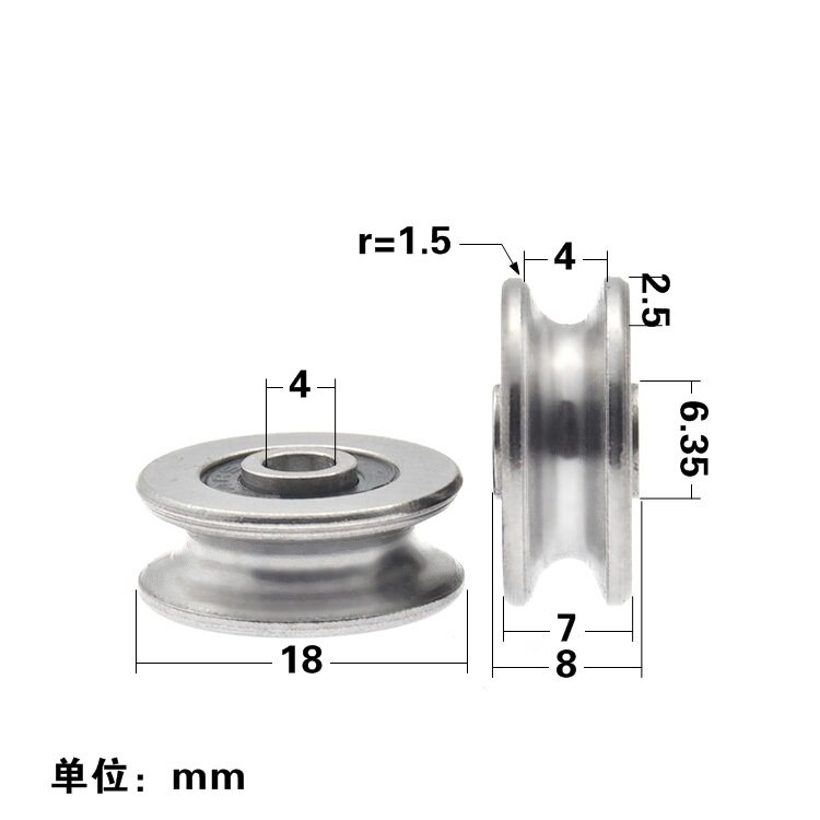 Стальной проволочный подшипник стальной металлический шкив 4 мм внутренний диаметр U -обработанные вогнутые колеса анти -надежные слайдные колеса 4*18*7