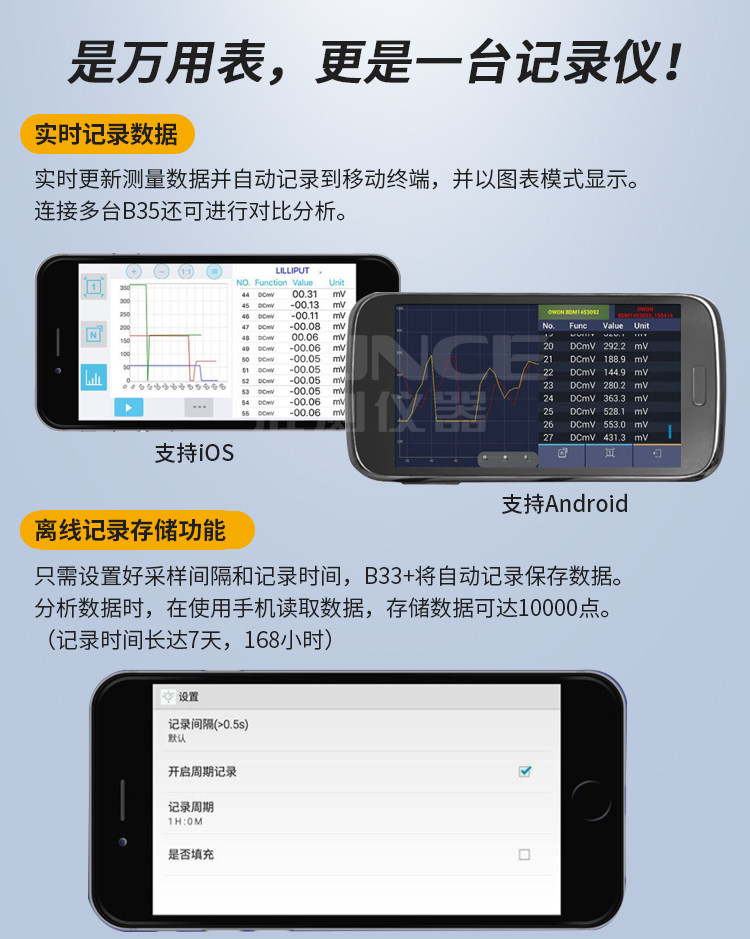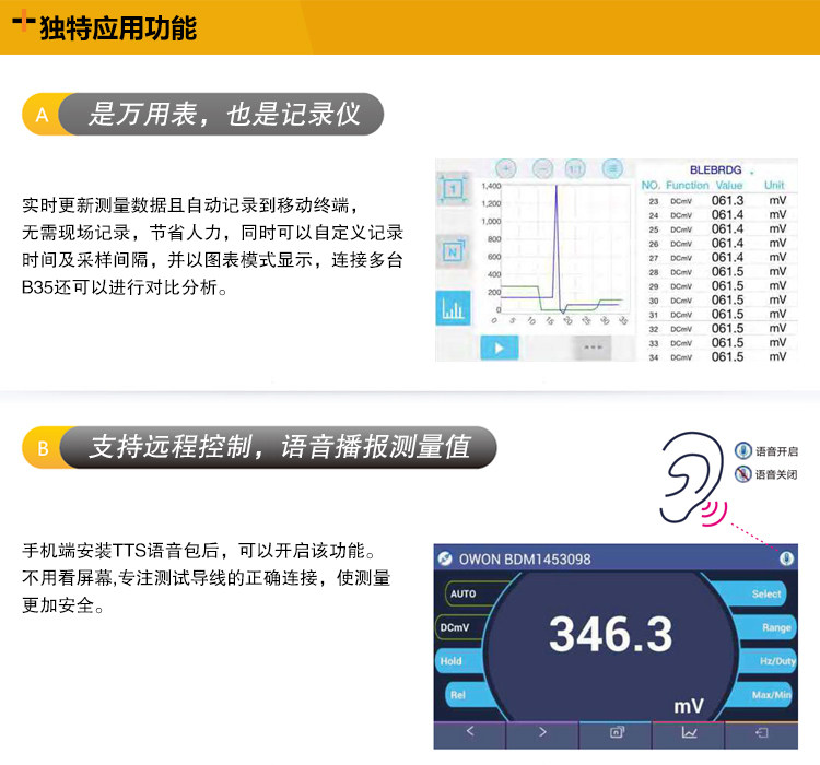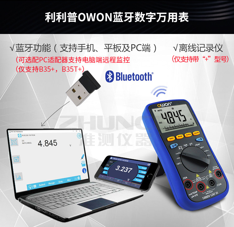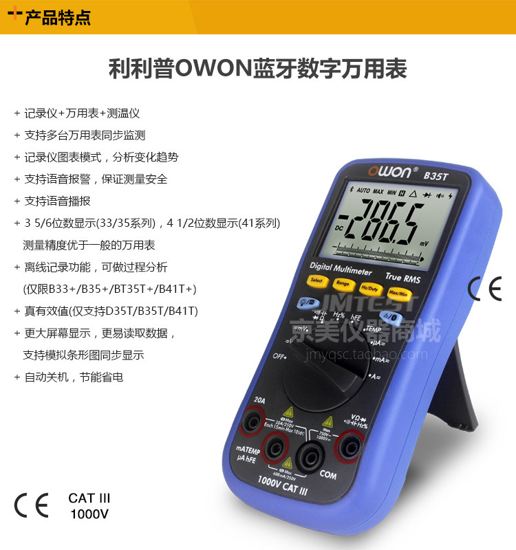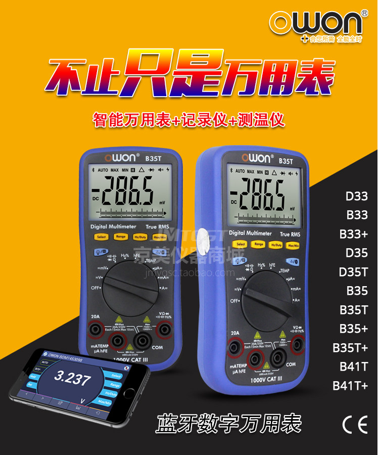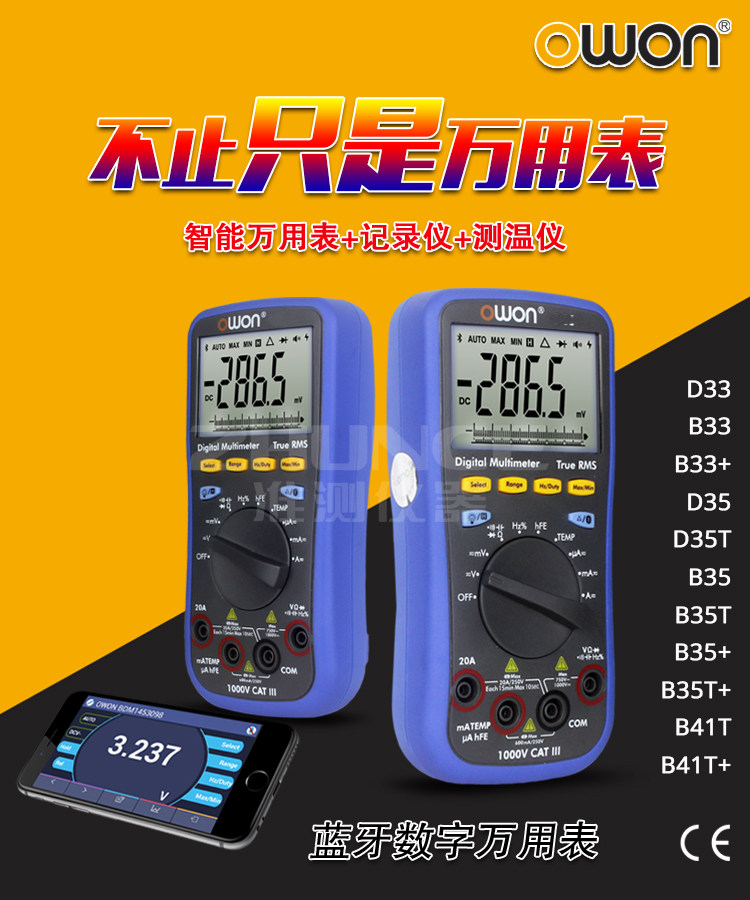 OWON LIPP B35T Bluetooth Universal Merit Merit High -Pression Data записывает десять тысяч скоростей свидетелей защитные продолжительность фураза