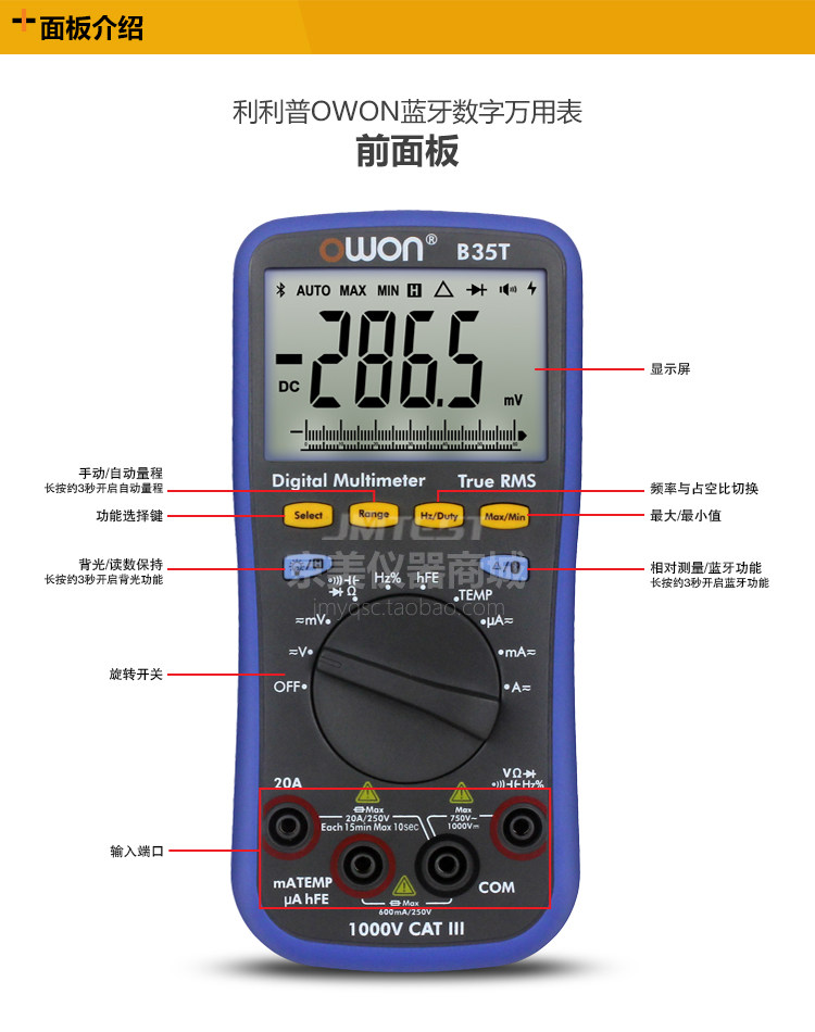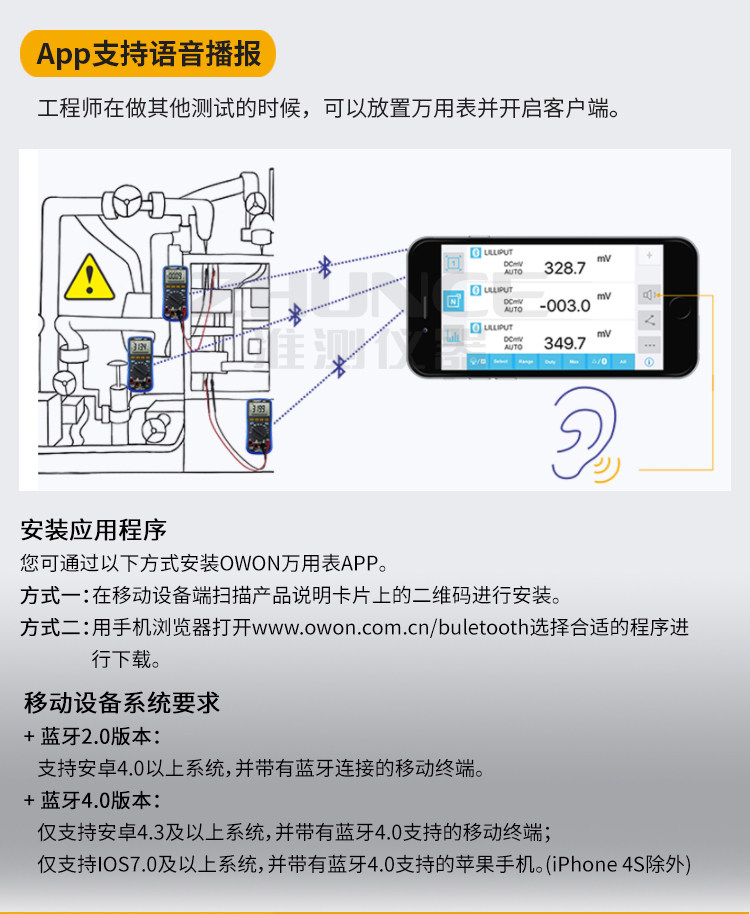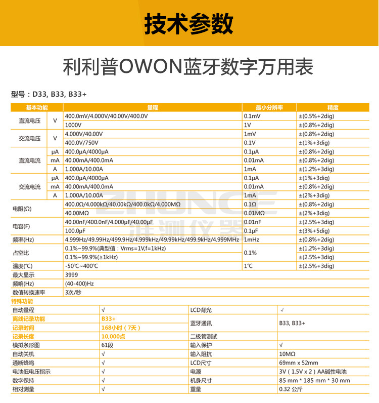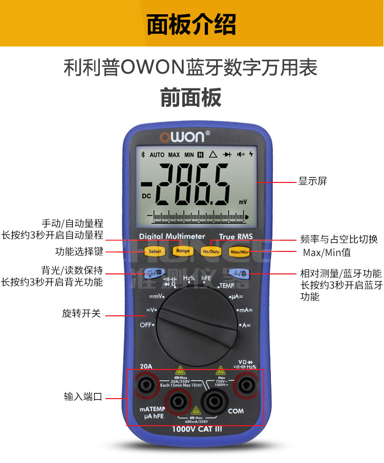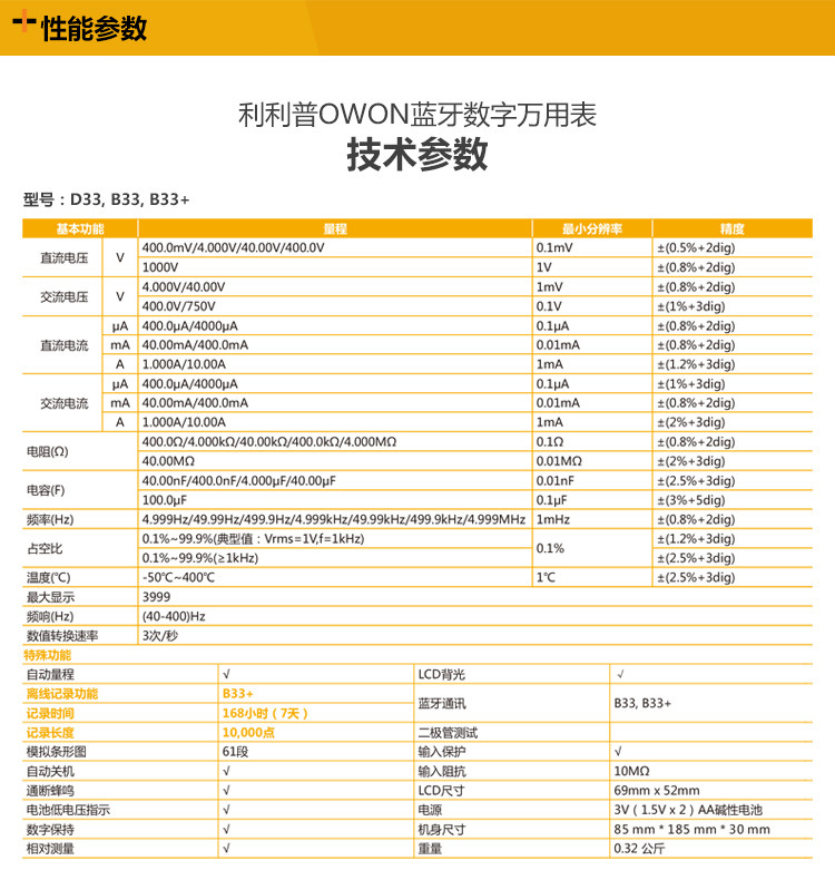 OWON LIPP B35T Bluetooth Universal Merit Merit High -Pression Data записывает десять тысяч скоростей свидетелей защитные продолжительность фураза