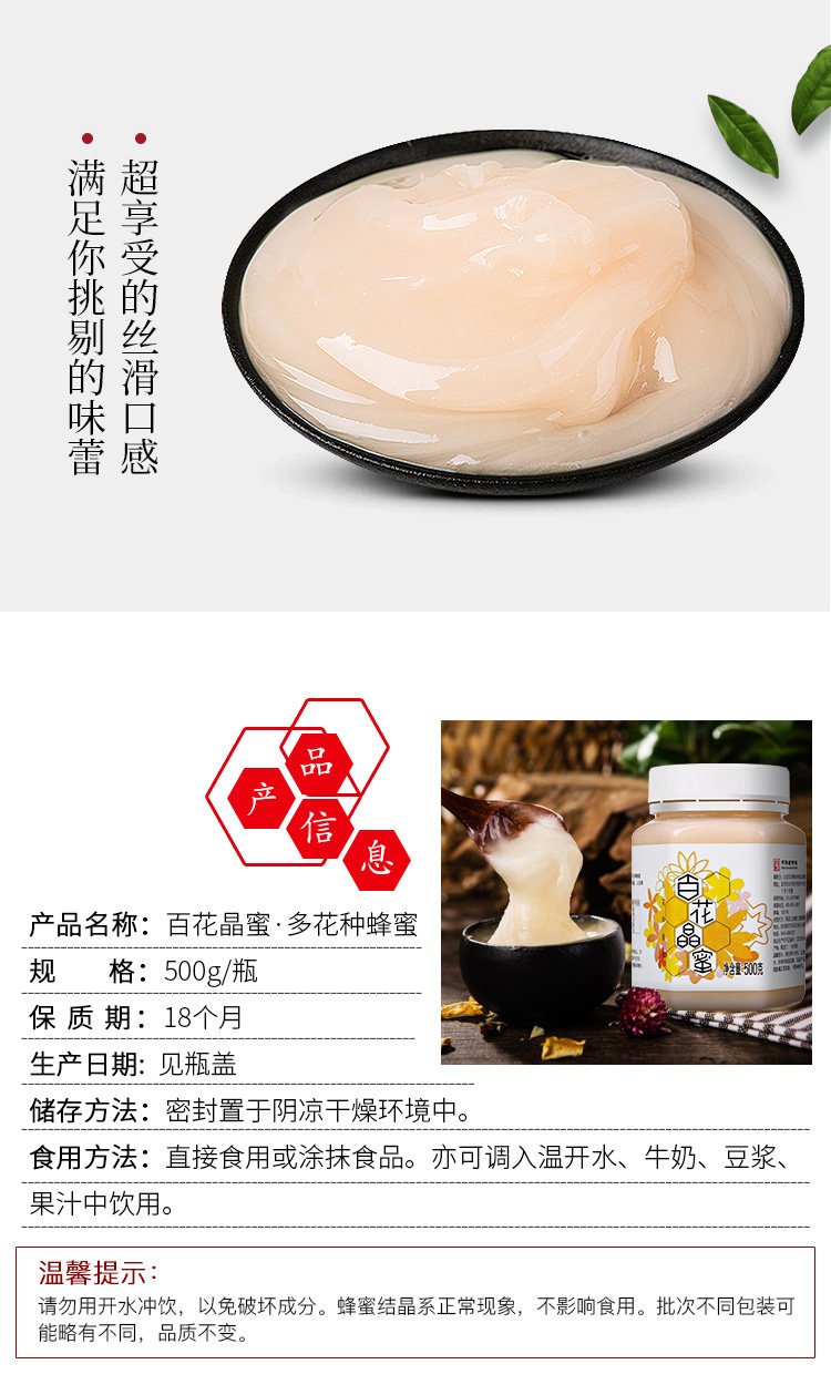 Китайский старый -модный байхуа бренд Crystal Honey 500G/бутылка натуральный цветок мед с медом и другим медом пить и мелодия