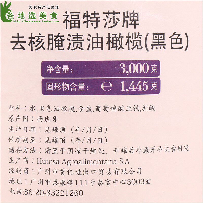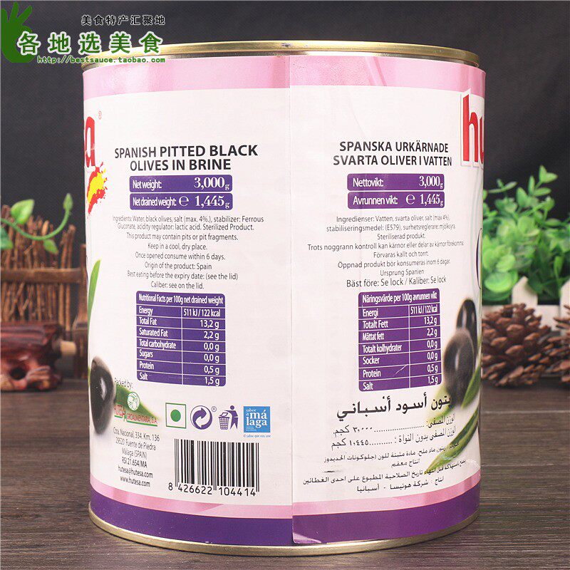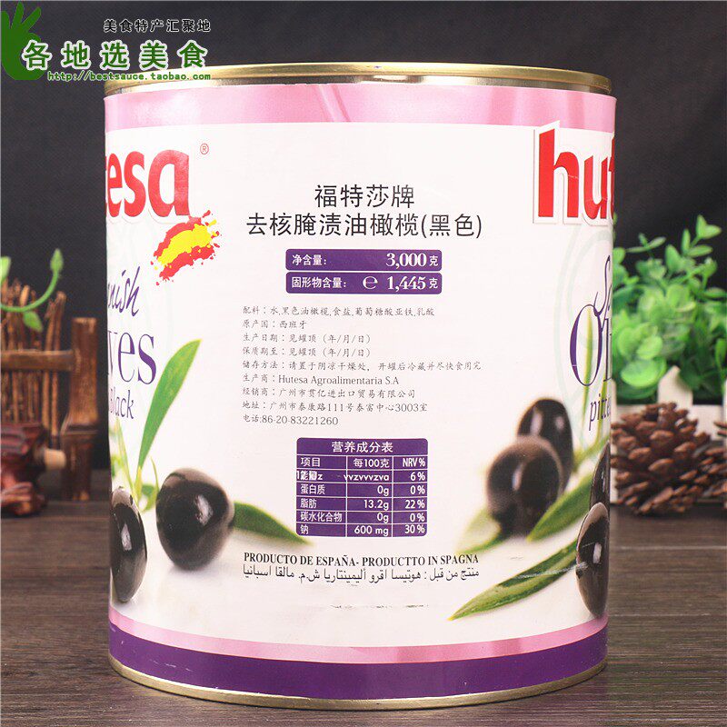 Сплошное содержание достигает 1,445 кг!Очень доступно!Оливки Испании -это мировые продукты. Оливки высокого качества соответствуют пицце, которая очень вкусная.Черный на пиццерии, то, что в круге использует эту каплю среза!Используется для приправы салата и пиццы.После жевания есть особый оливковой аромат.