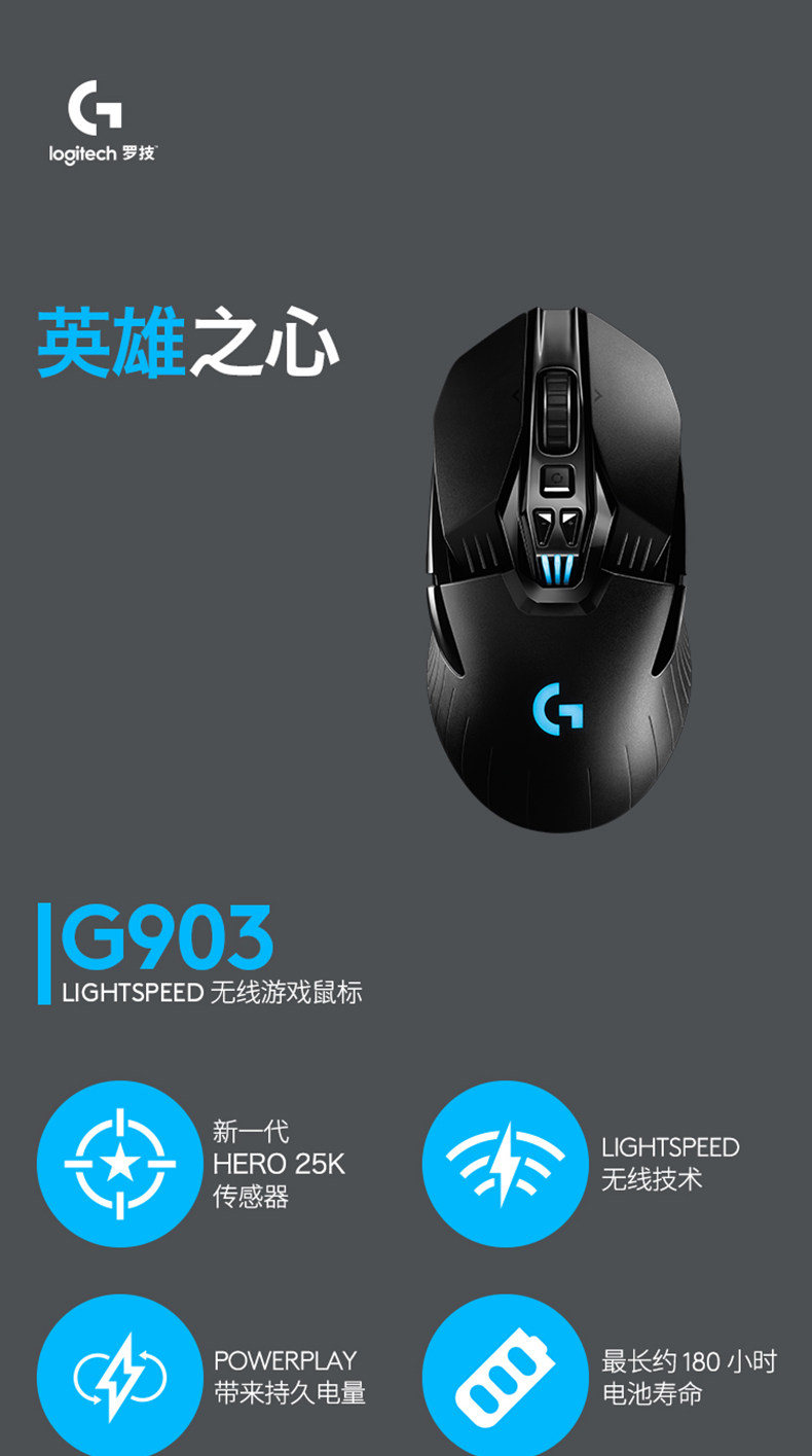 Logitech, игровая механическая беспроводная мышь с зарядкой, G903