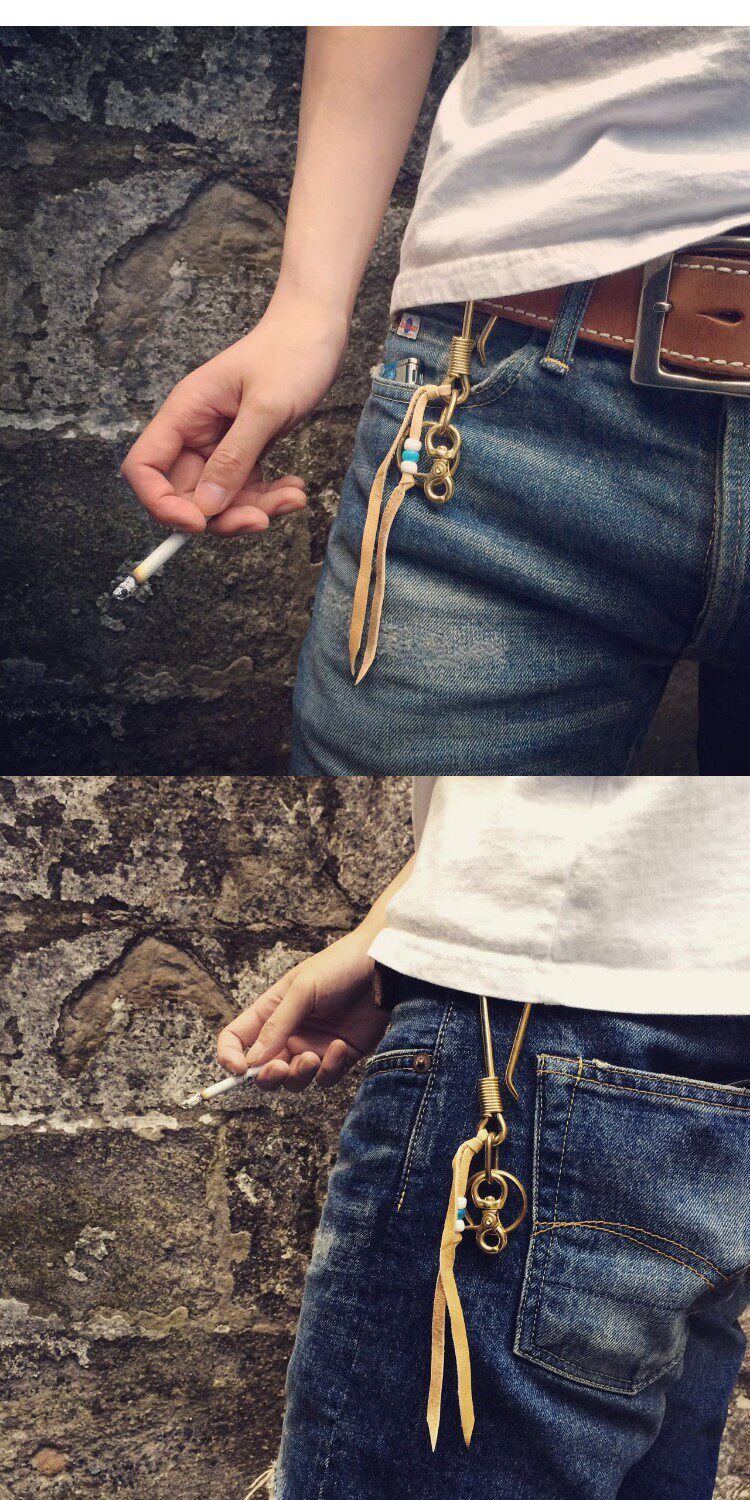 Японский латунный кожаный ретро брелок подходит для мужчин и женщин, пряжка, подвеска