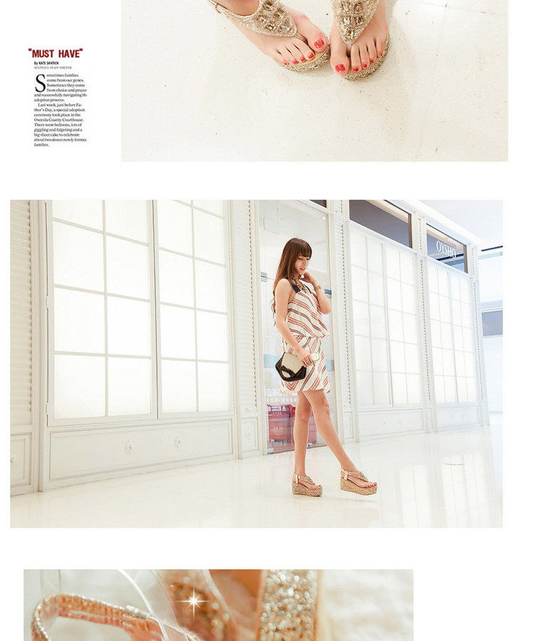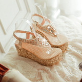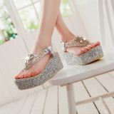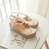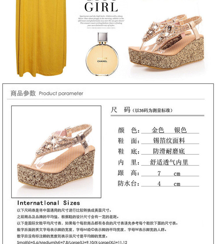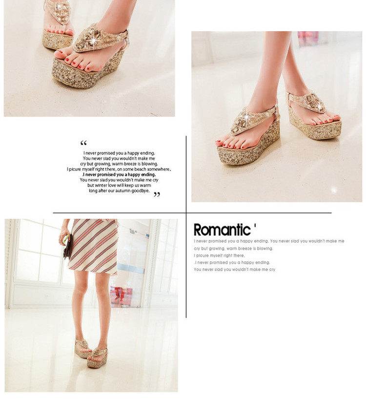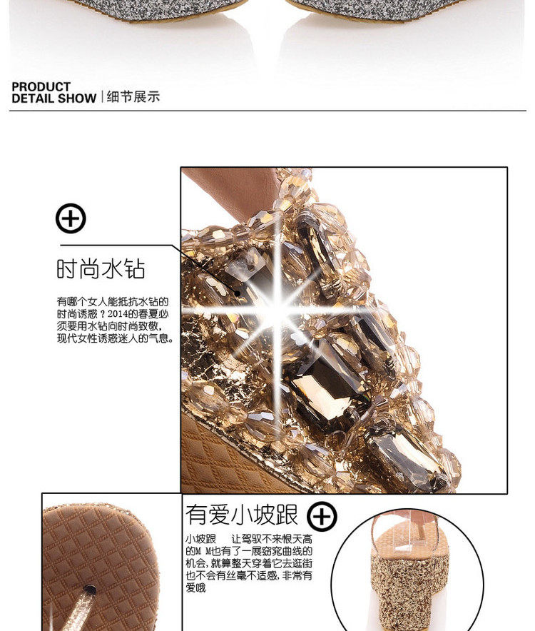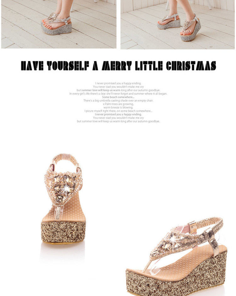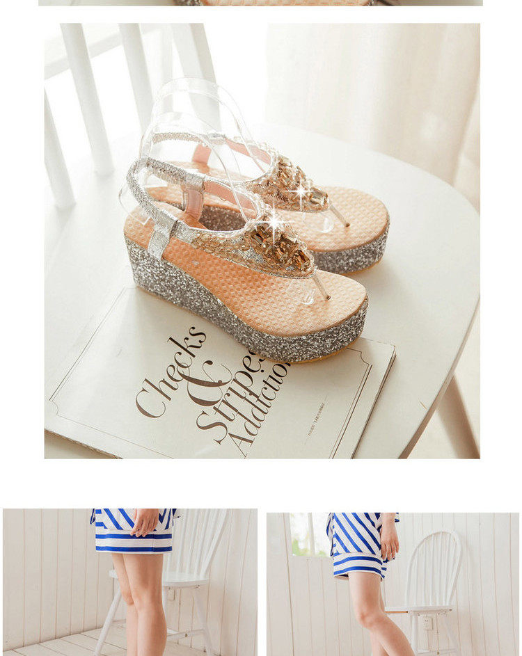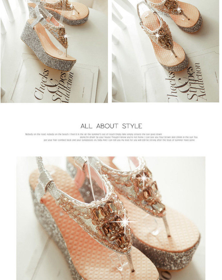 Летние шлепанцы на танкетке, пляжные сандалии, водонепроницаемые туфли на платформе, толстой подошве золотого и серебряного цвета, туфли на плоской подошве на высоком каблуке со стразами для женщин