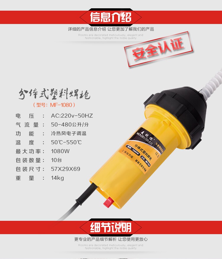 Mai Rui Bao Division MF1080W Электронная сварка пластиковая сварка Торон 1000 Вт горячая сварка пластиковая пистолет PP полоса