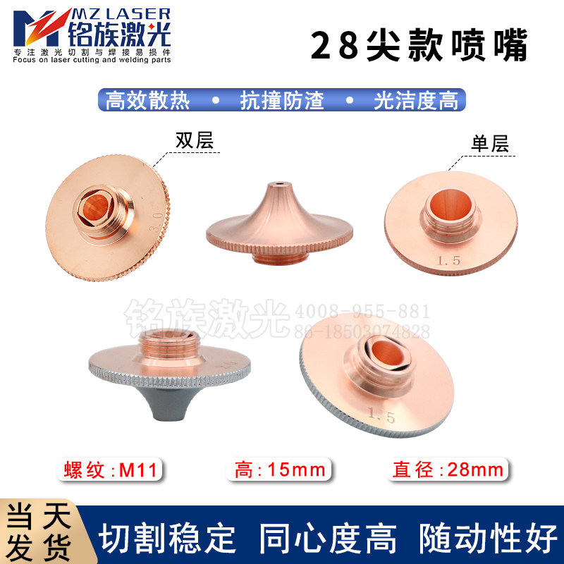 Станок для волоконной лазерной резки, насадка с наконечником Hongshan Meike Wanshunxing, высокоскоростная медная насадка с изогнутым наконечником 28 мм, одинарный и двойной слои