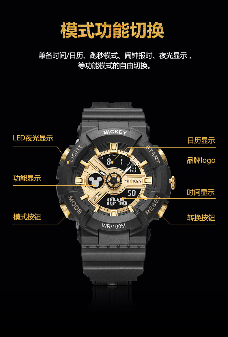 Дисней, электронные детские механические водонепроницаемые мужские часы для мальчиков, для средней школы, подходит для подростков