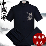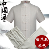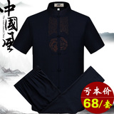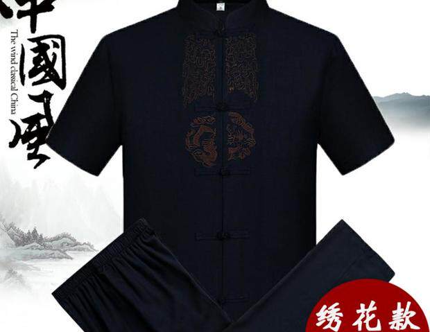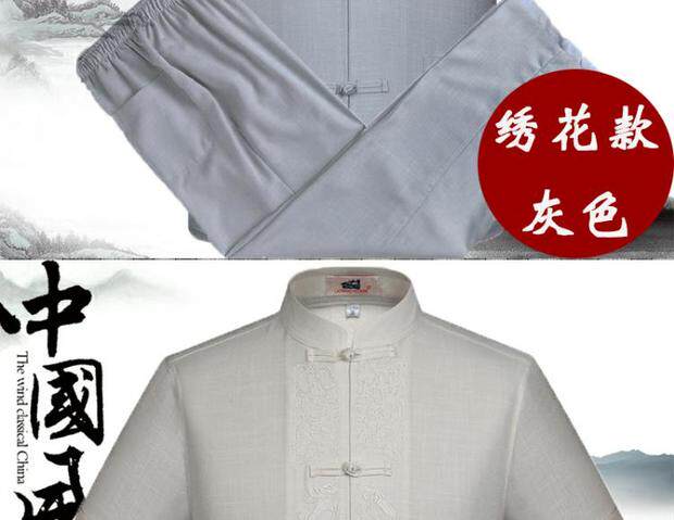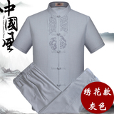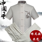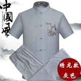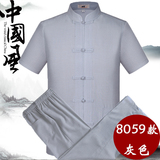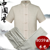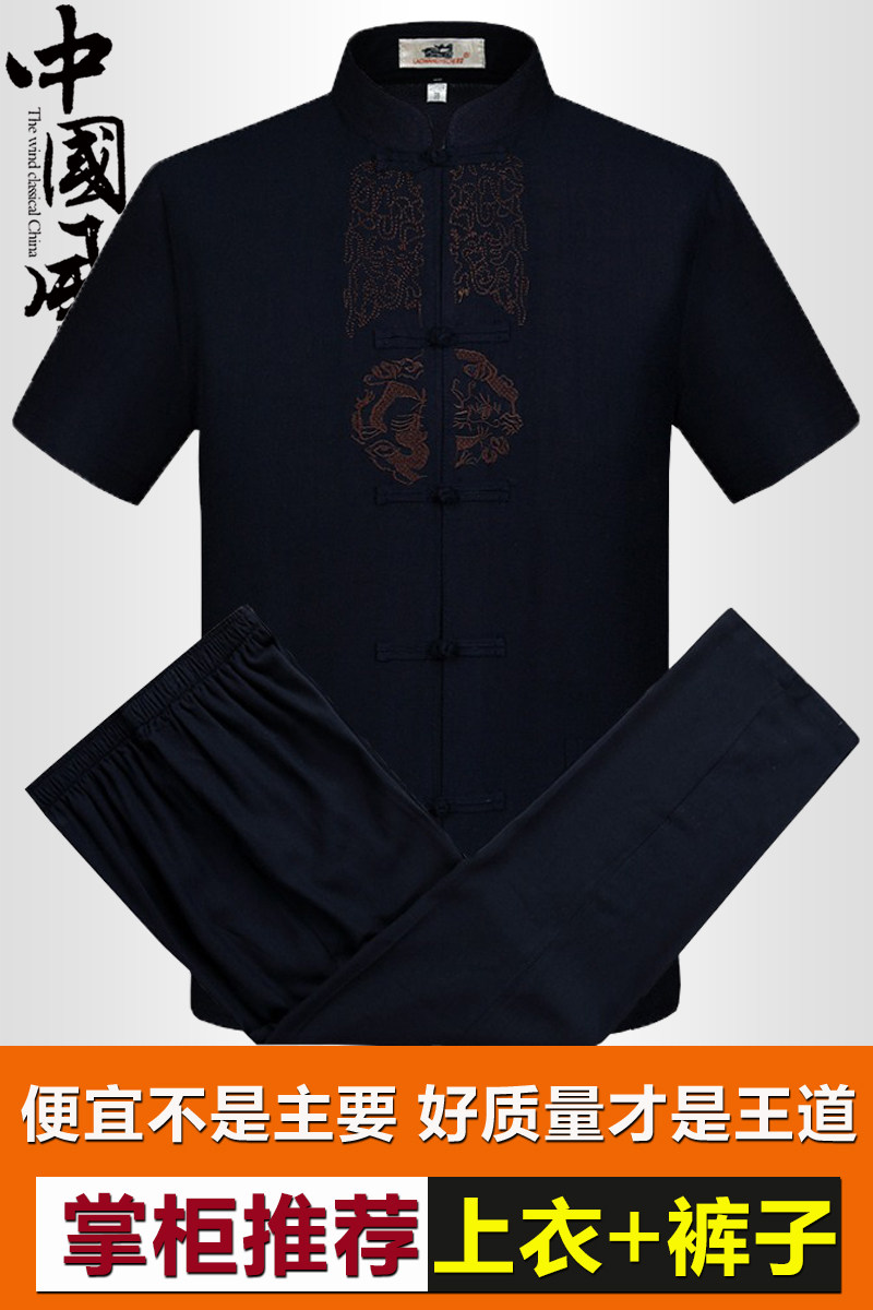 Мужской летний комплект для пожилых людей, летняя одежда, ханьфу, китайский стиль, из хлопка и льна, для среднего возраста, короткий рукав