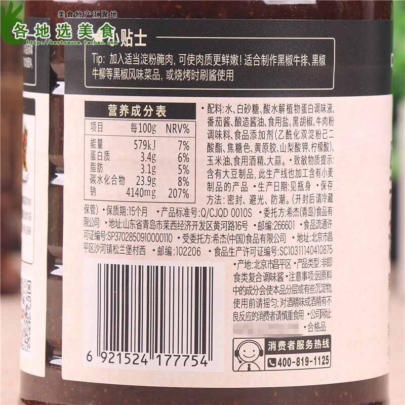 - [Одиночная бутылка] соус черного перца 820G*1 бутылка
