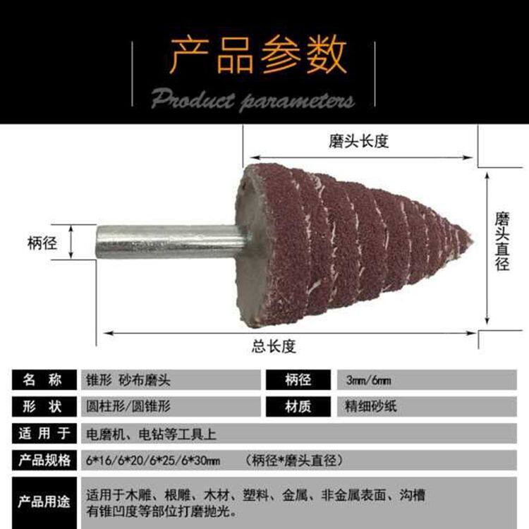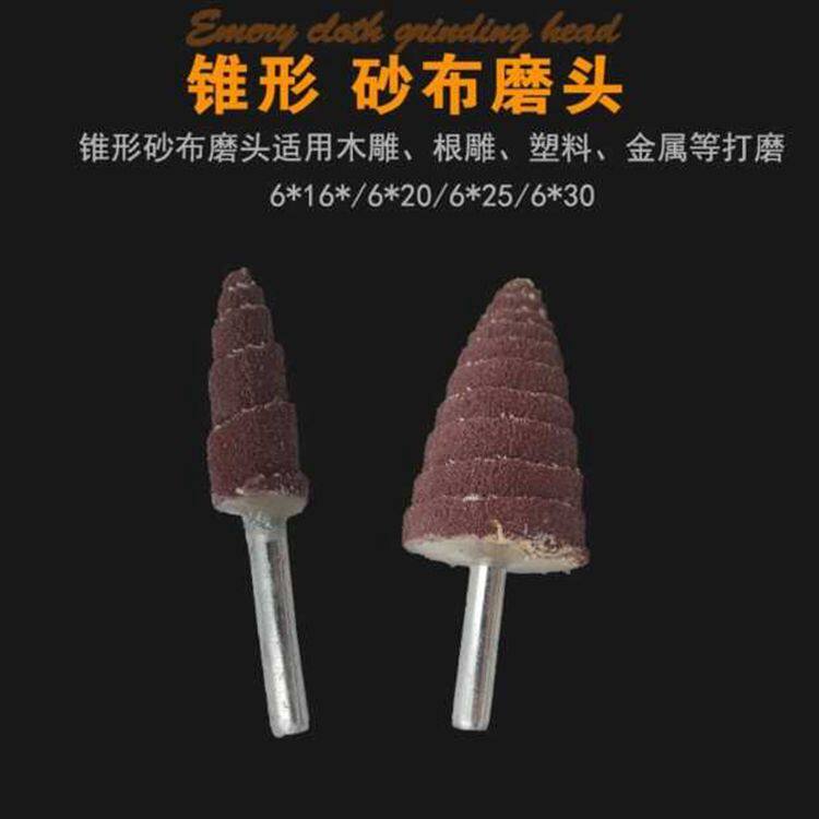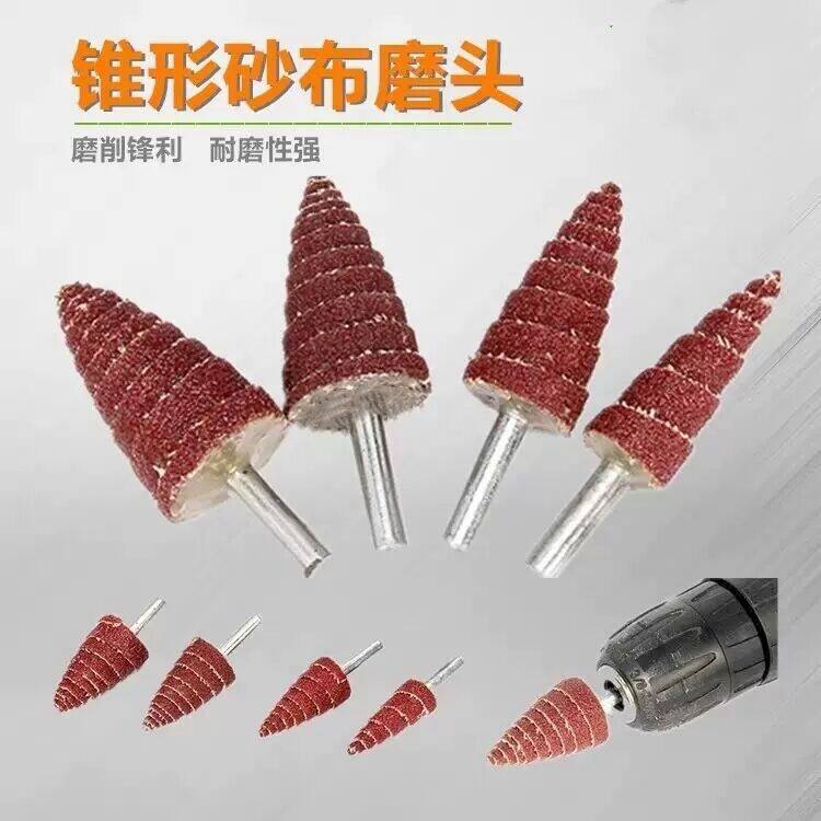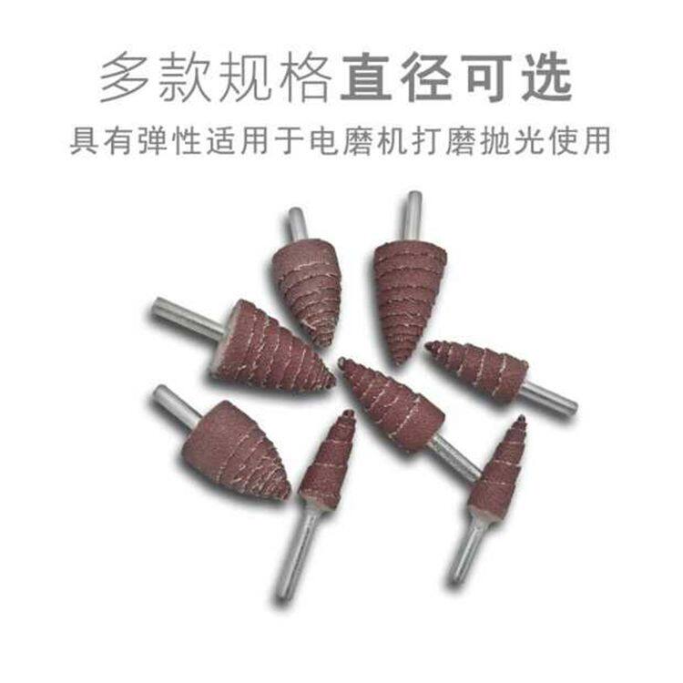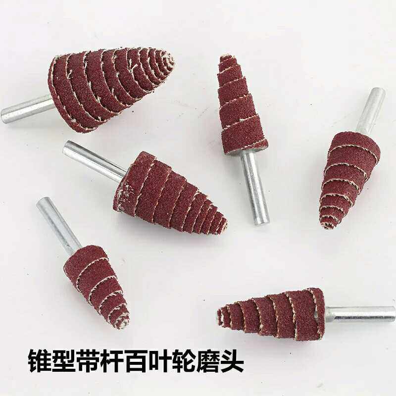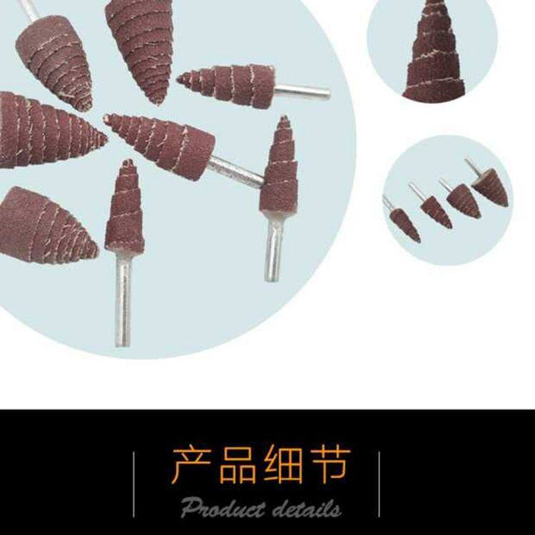 锥形带柄百叶轮磨头 尖头木材打磨抛光砂纸磨头塔形带柄砂布磨头