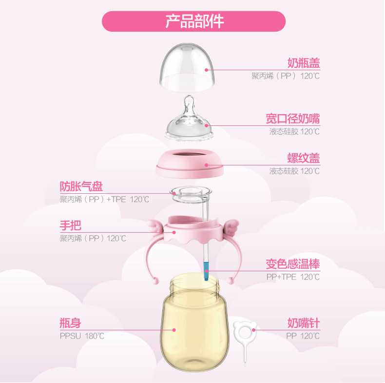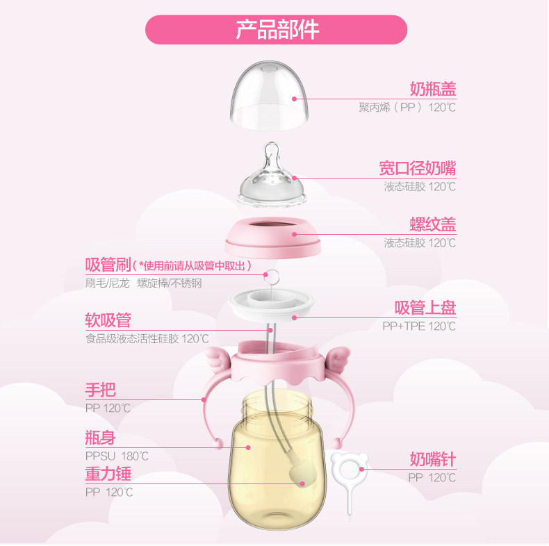小白熊 Бутылочка для кормления для новорожденных, детское моющее средство для бутылочек, ручка, широкое горлышко