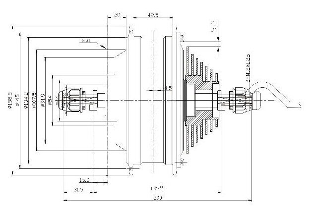 - Диапазон установки:Продукт может применяться для полного привода и привода с усилителем электромобилей.Велосипеды с диагональю более 26 дюймов могут управляться только после модификации и могут быть оснащены дисковыми тормозами/V-тормозами;① Отверстие двигателя составляет 135 мм; ② Он может быть оснащен колодками дискового тормоза диаметром более 160 мм и расстоянием между отверстиями 44 мм; ③ Размер отверстия для спицы двигателя подходит для спиц 12G или 13G, а для спиц 10G и выше необходимо просверлить отверстия для двигателя на 0,1 мм больше; ④ Диаметр вала двигателя составляет 1 см; ⑤ Двигатель имеет блокировку и не может быть быстро снят после модификации!