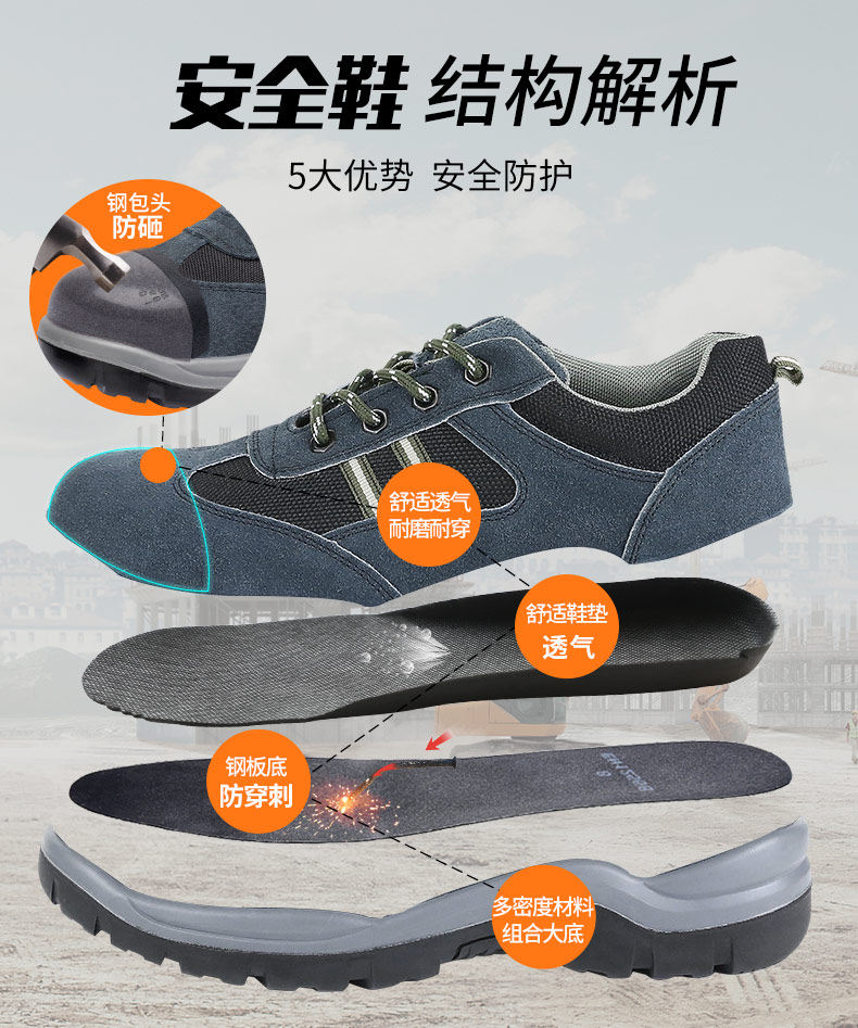3515 Сильный мужчина трудовая обувь мужская весна и осень -воздухопроницаемая рабочая обувная стальная стальная детская, анти -смачивающая анти -перепрыгивающая защитная защитная обувь