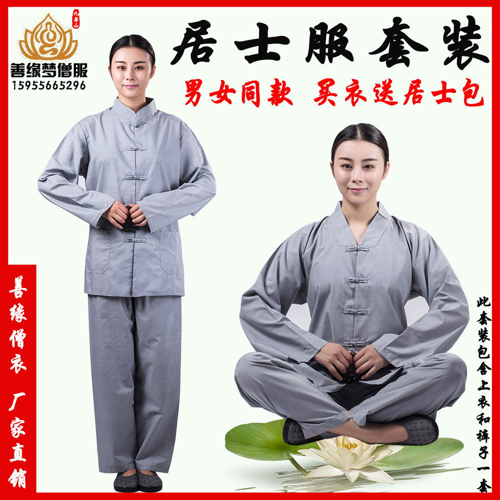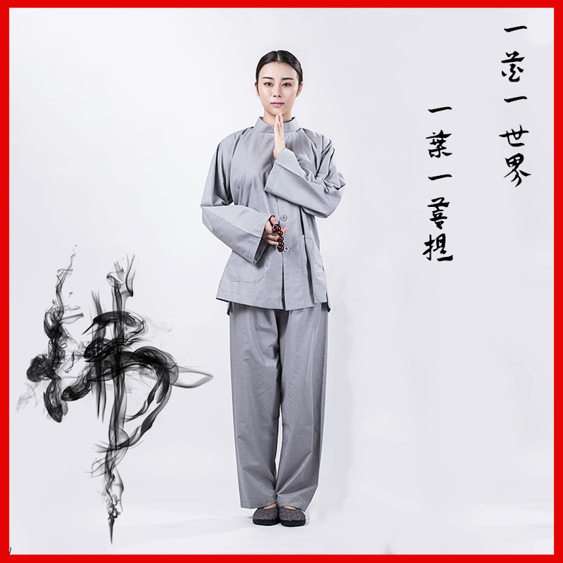 Коттон и махаи Цинджу Высшая Женская Женская Служба Служба Мужские Мужские набор Хайкинг Поклонение Будде Монк Сервер Весна короткая одежда монаха