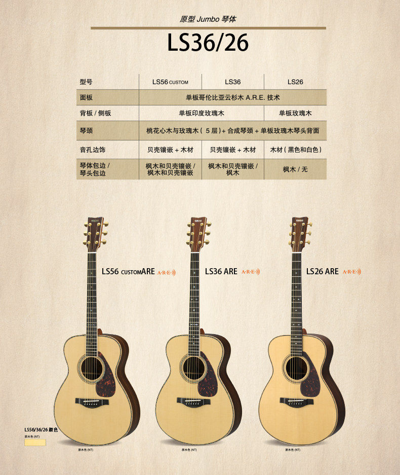 Yamaha LL26 LL36 LJ26 LS26 — полноценная сингловая фолк-электрогитара серии LL.