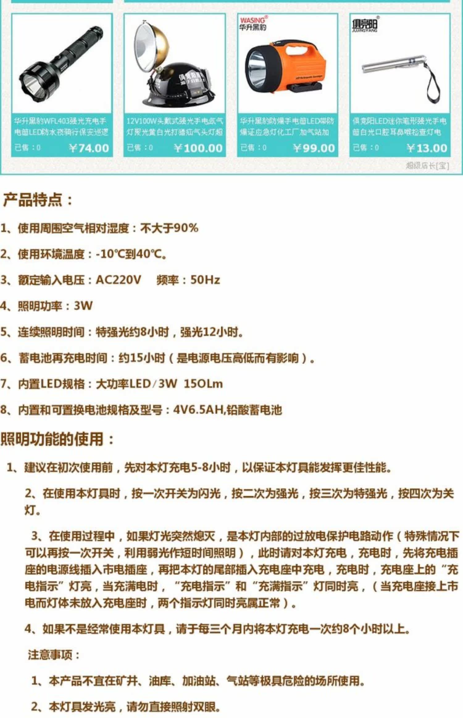 Продавец:俱竞阳户外照明世家