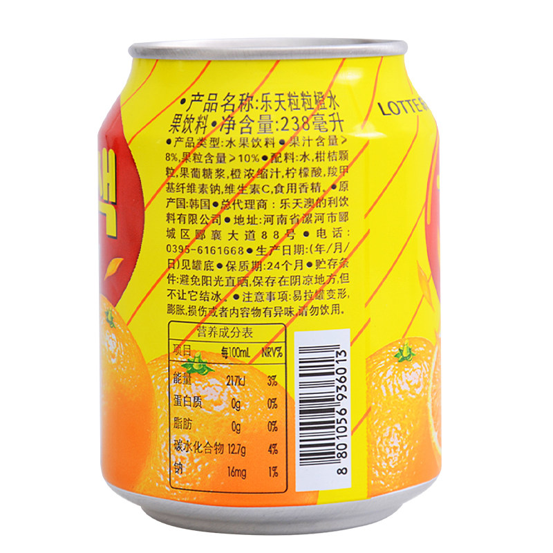 Бесплатная доставка корейской импортной напитки Lotte Grain Orange Juce Beverage 238 мл/12 Can/Whate Box/Box Lotte