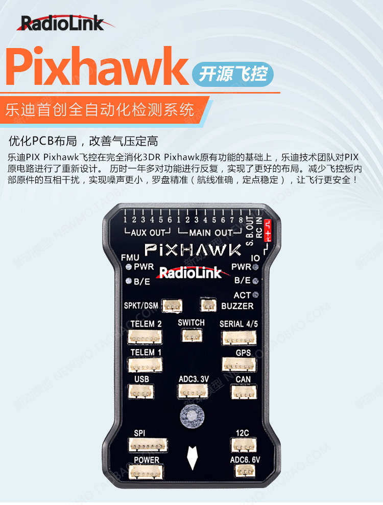 Radiolink Leudi Pixhawk Pix Flying Control M8n Four Six -ось GPS Multi -Axis Stable Open Source UltraSound Aerial Photography