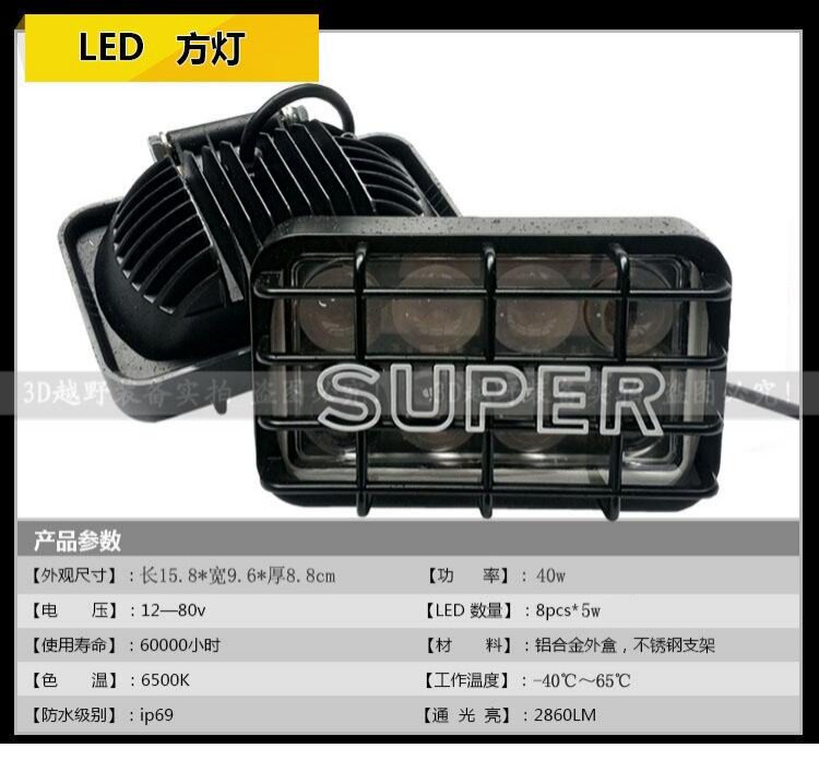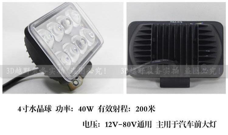 Светодиодный вспомогательный квадратный светильник, внедорожник, 40W
