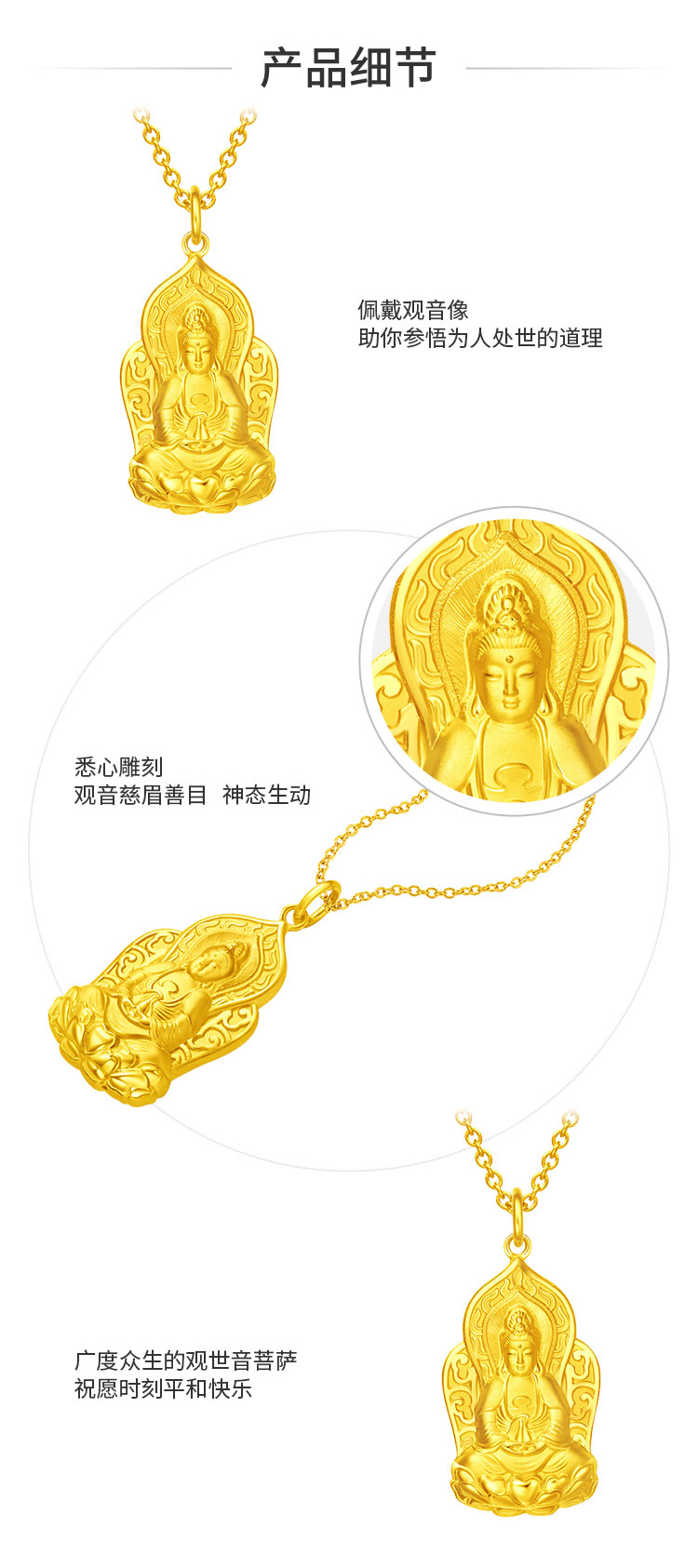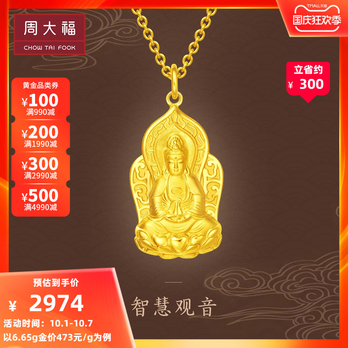 周大福 Сострадание и умная медитация Гуаньяна, золотой кулон, ценообразование EOF119