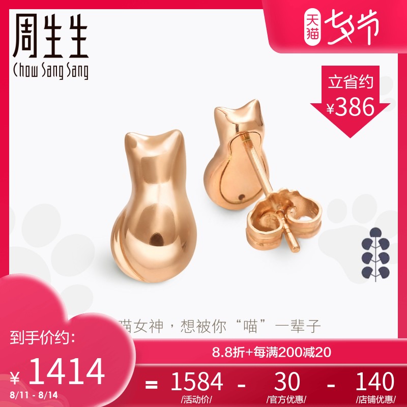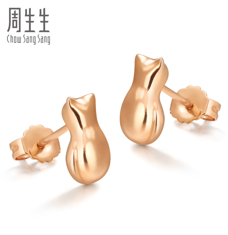 周生生 Золотые брендовые серьги, 18 карат, розовое золото