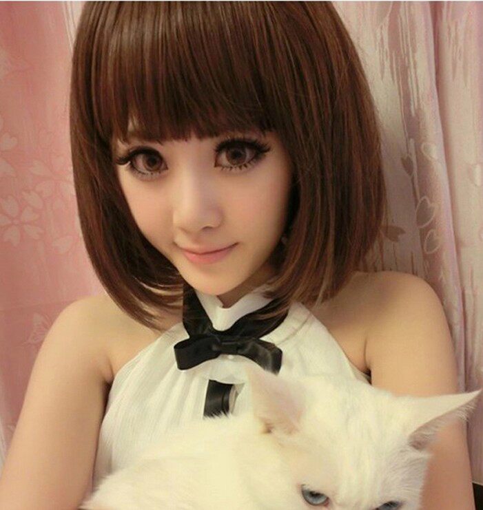 Псевдо -Native Wig короткие волосы Qi Bangs Hair Set Anti -String Women's Big Guy Bobo трансформация CD милая прическа