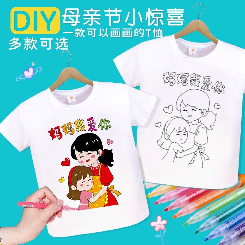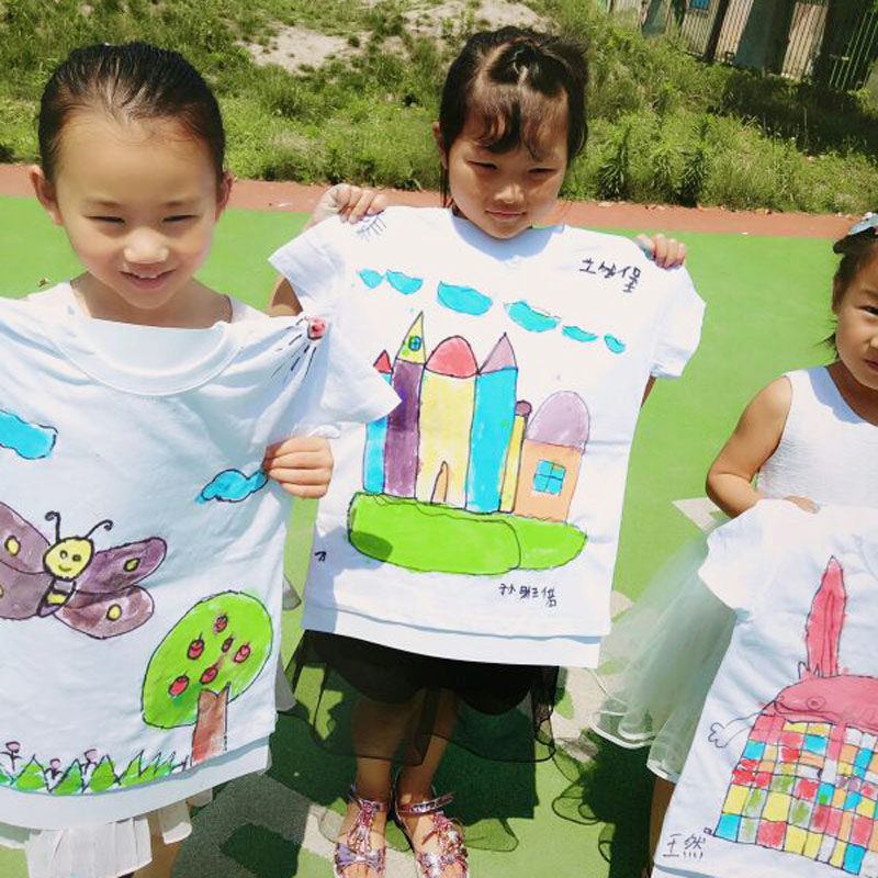 Детская белая футболка с коротким рукавом, хлопковый летний набор материалов для детского сада, DIY, короткий рукав, ручная роспись, граффити