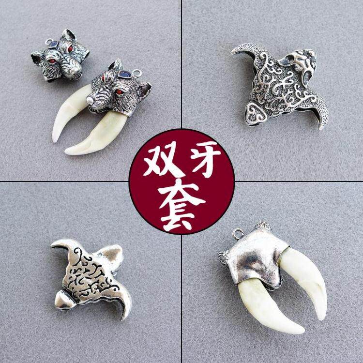 Монгольские пастбища волки Тотем двойной подвесной пакет серебряный мешок серебряной куртки и кошачьи когти