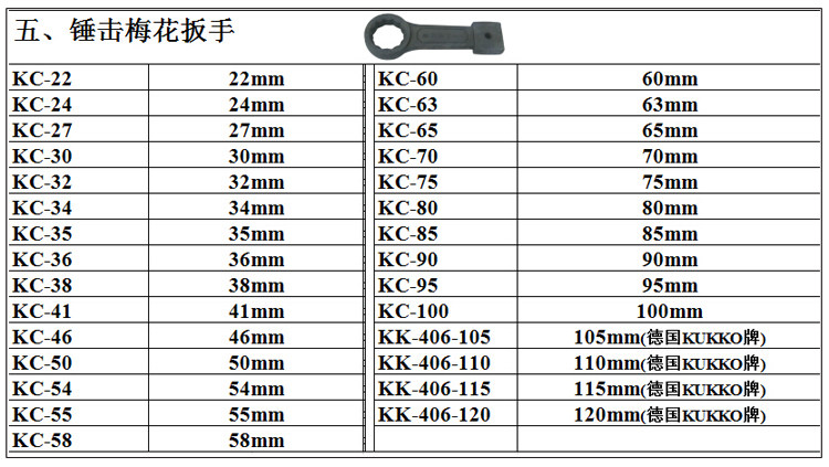 Тайвань KWT Tools Молотковый ключ KC-22-95 мм Сверхмощный молоток Ключ с одной головкой Хром-ванадиевая сталь