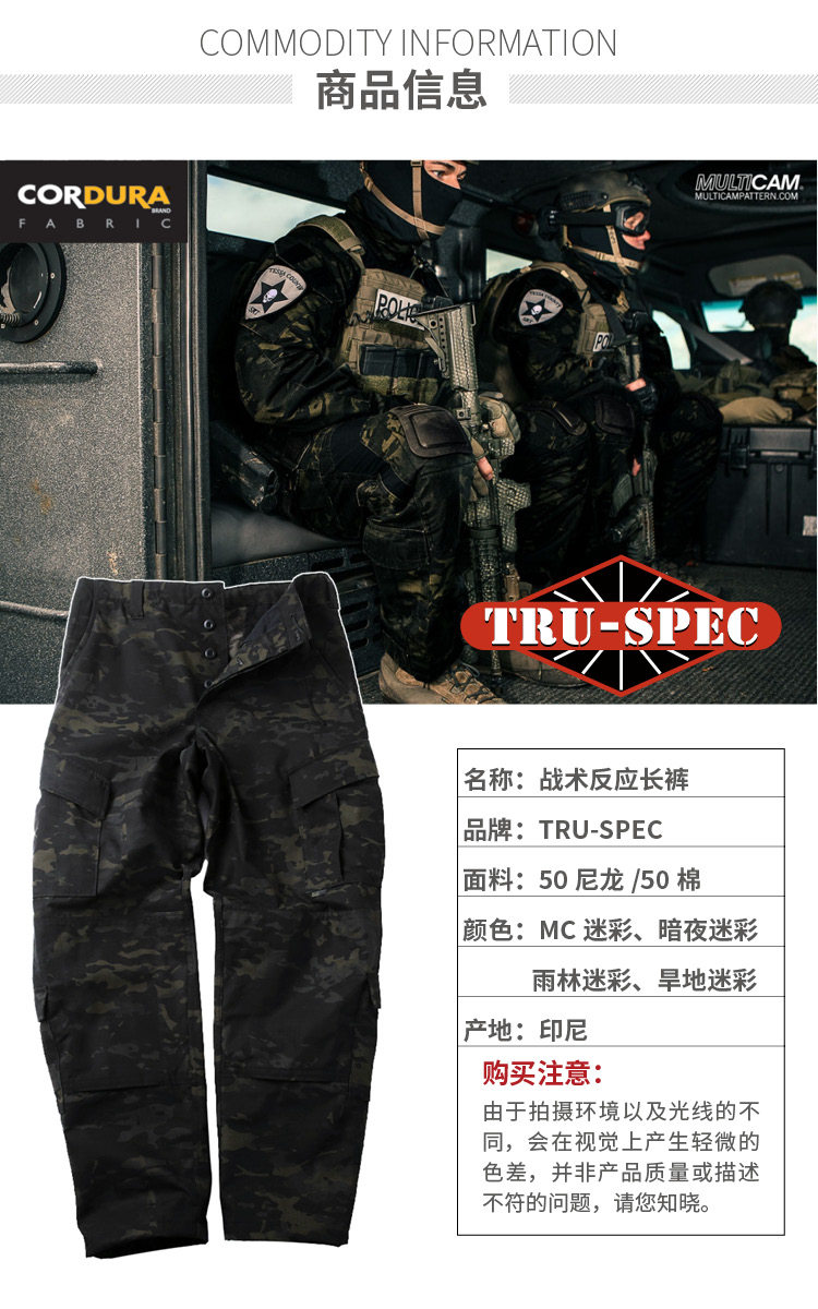TRU-SPEC Железная бренда тактическая реакция униформа CP Codora Long Bants MC Dark Night