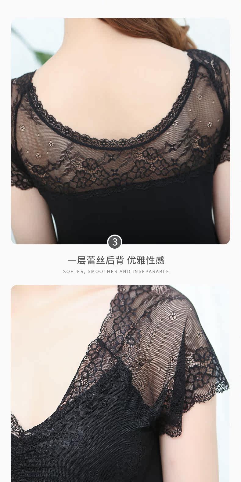 Белая пижама, тонкий кружевной черный топ с чашечками, короткий рукав, V-образный вырез, большой размер