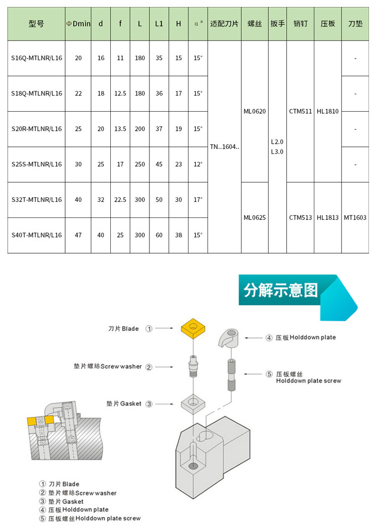 95-градусный инструмент для инструмента CNC Tool Lever S16Q/S20R/S22R/S25S/S32T/S40T-MTLNR/L16