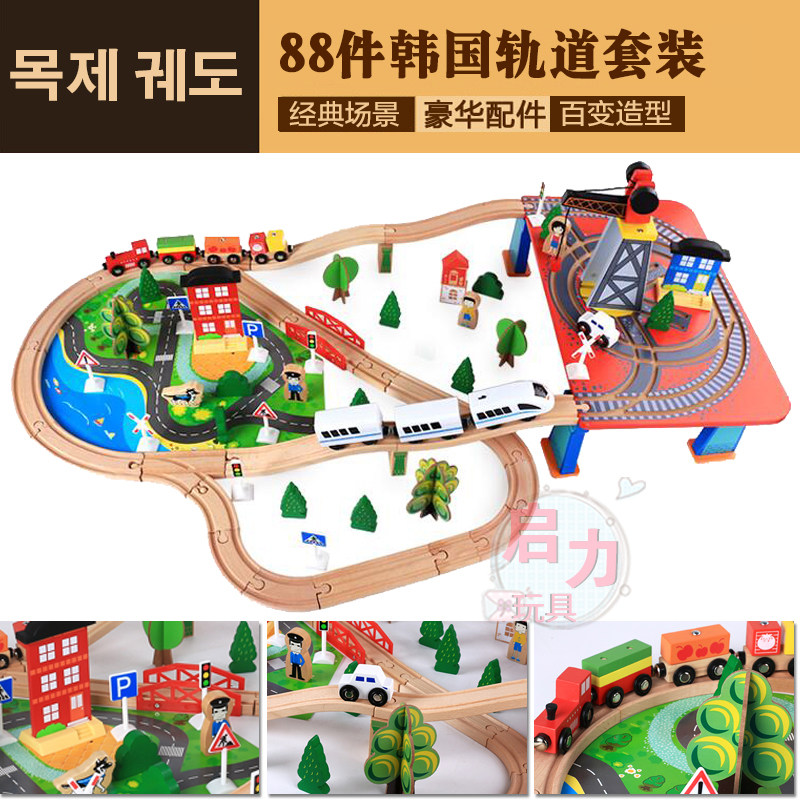 Деревянный поезд из натурального дерева с рельсами, комплект, игрушка, игрушечная машина для мальчиков, Южная Корея, 2020 года, новая коллекция