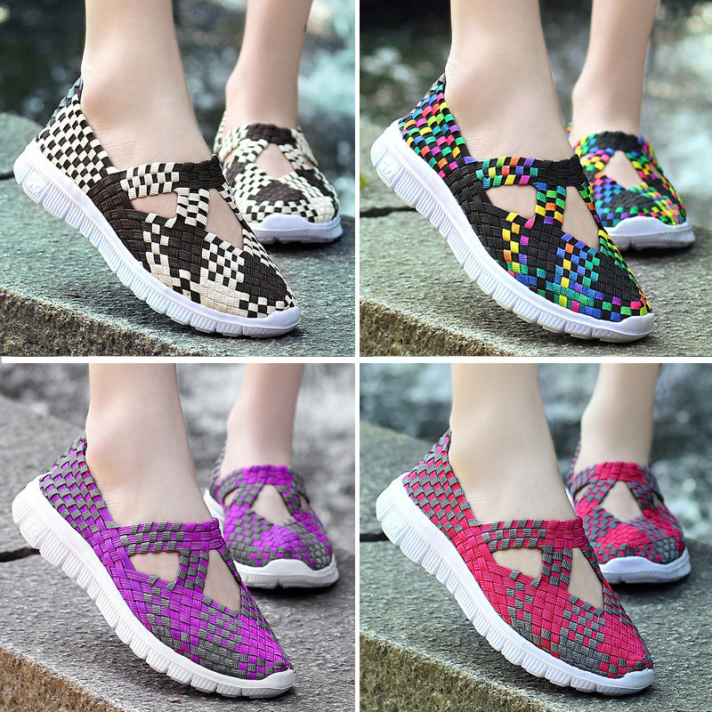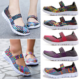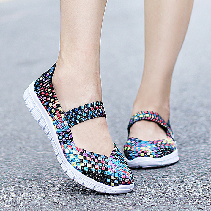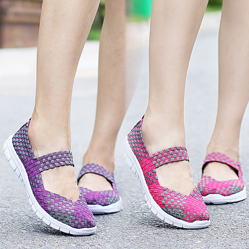 Весенние туфли из старой пекинской ткани для женщин, плетеные туфли без шнуровки, дышащие туфли для мам, туфли для кадриль, удобные туфли на плоской подошве для женщин